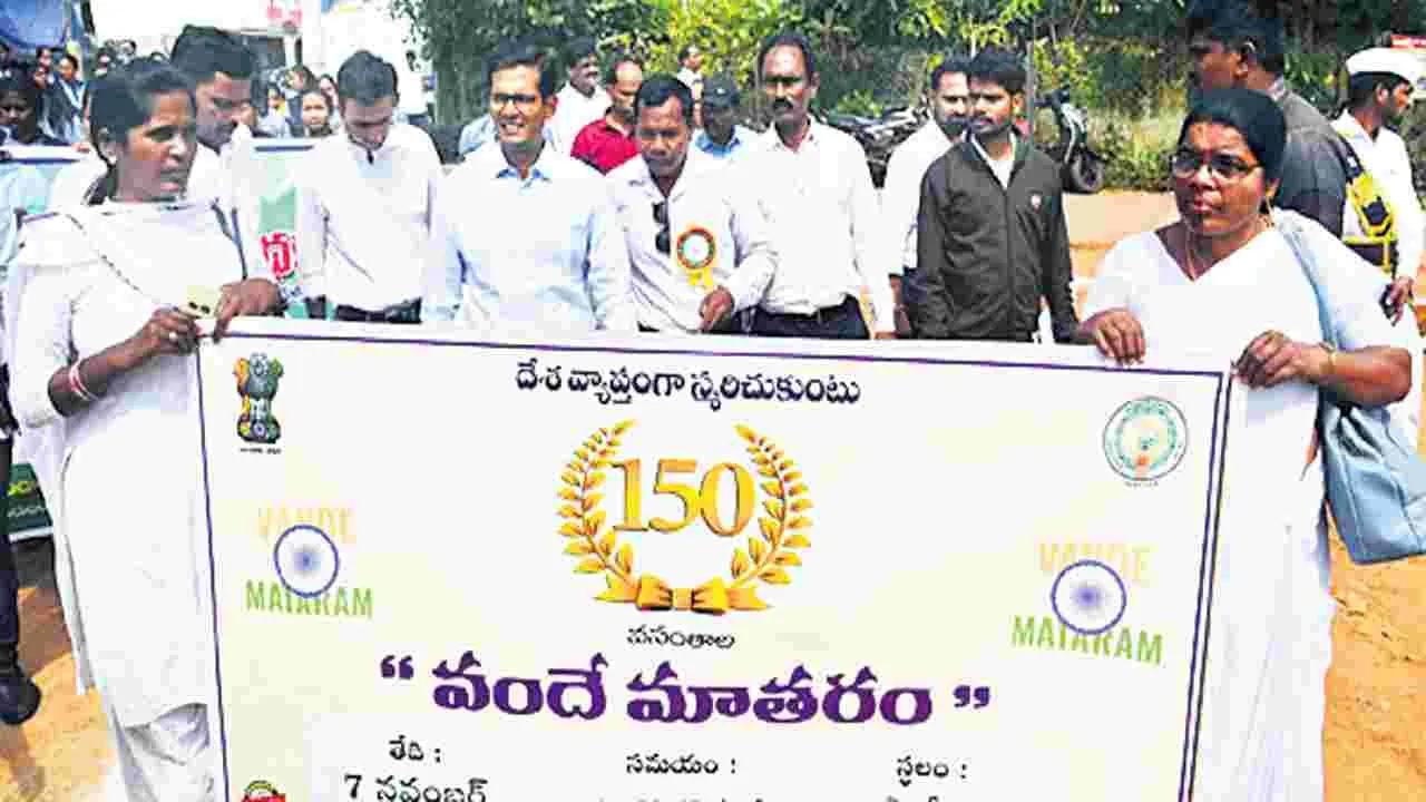పాడేరు, నవంబరు 7 (ఆంధ్రజ్యోతి): వందేమాతం స్ఫూర్తితో దేశ సేవలకు అంకితం కావాలని జిల్లా కలెక్టర్ ఏఎస్.దినేశ్కుమార్ అన్నారు. వందేమాత రం గీతం 150 ఏళ్ల పూర్తి చేసుకున్న సందర్భంగా శుక్రవారం ఇక్కడ నిర్వహించిన ర్యాలీలో ఆయన మాట్లాడారు. మన అందరం వందేమాతం స్ఫూర్తితో దేశానికి సేవలు అందించాలన్నారు. ఈ గీతం ఇచ్చిన శక్తితో ప్రతి పౌరుడిలో ఉద్యమ స్ఫూర్తిని పెరిగిందన్నారు. దానిని ప్రపంచానికి చాటి చెప్పాలన్నారు. ఈకార్యక్రమంలో అసిస్టెంట్ కలెక్టర్ సాహిత్, ఐటీడీఏ ఏపీవో ఎం.వెంకటేశ్వరరావు, ఏవో ఎం.హేమలత, డీఈవో బ్రహ్మాజిరావు, తదితరులు పాల్గొన్నారు. అలాగే జిల్లా ఎస్పీ కార్యాలయంలో ఎస్పీ అమిత్బర్దార్, సిబ్బంది వందేమాతర గీతం ఆలపించారు. కలెక్టరేట్లో జిల్లా రెవెన్యూ అధికారి కె.పద్మలత ఆధ్వర్యంలో ప్రత్యేక కార్యక్రమాన్ని నిర్వహించారు.