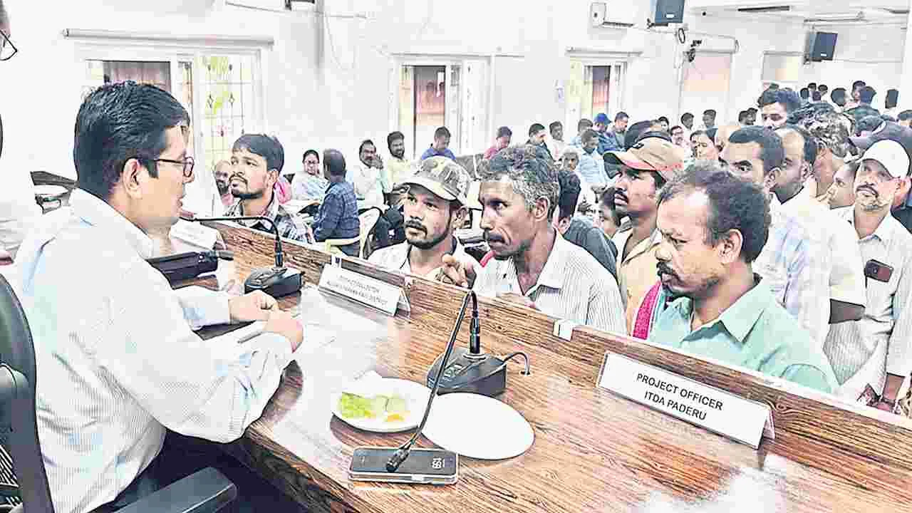ఐటీడీఏ కార్యాలయంలో శుక్రవారం నిర్వహించిన ప్రజా సమస్యల పరిష్కార వేదిక (మీకోసం)కార్యక్రమంలో జిల్లా కలెక్టర్ ఏఎస్.దినేశ్కుమార్, జాయింట్ కలెక్టర్ డాక్టర్ ఎంజే.అభిషేక్గౌడ్, డీఆర్వో కె.పద్మలత అర్జీదారుల నుంచి 110 వినతులను స్వీకరించారు. అరకులోయలో పీవీటీజీ బాలుర ఆశ్రమ పాఠశాలకు ప్రహారీ మంజూరు చేయాలని జి.మల్లేశ్వరరావు కోరగా, చింతపల్లి మండలం బెన్నవరం పంచాయతీ కట్టువీధికి తాగునీటి సౌకర్యం కల్పించాలని గ్రామస్థులు గడుతూరు జీవరత్నం, వెలగ దావీదు కోరారు. అలాగే పాడేరు మండలం బంట్రోతుపుట్టు గ్రామంలో అంగన్వాడీ కేంద్ర భవన నిర్మాణాన్ని పూర్తి చేయాలని గెమ్మిలి నాగేశ్వరరావు కోరగా, జి.మాడుగుల మెయిన్రోడ్డు నుంచి చుట్టుమెట్ట గ్రామానికి రోడ్డు నిర్మించాలని వంతాల తిమోతి కోరారు. అలాగే హుకుంపేట మండలంలో కామయ్యపేట రోడ్డుకు మరమ్మతులు చేయాలని తడిగిరి, తీగలవలస, గ్రామాలకు చెందిన పి.గంగరాజు, పి.రామచంద్, తదితరులు కోరగా, ముంచంగిపుట్టు మండలం జర్రెల పంచాయతీ బొడ్డగొంది గ్రామానికి పాఠశాల భవనం మంజూరు చేయాలని సర్పంచ్ ఎన్.భాగ్యవతి కోరారు. కార్యక్రమంలో జిల్లా వ్యవసాయాధికారి ఎస్బీఎస్.నంద్, జిల్లా ఉద్యానవనాధికారిరమేశ్కుమార్రావు, గిరిజన సంక్షేమ ఇంజనీరింగ్ శాఖ ఈఈలు కె.వేణుగోపాల్, జి.డేవిడ్రాజు, డ్వామా పీడీ విద్యాసాగర్, డీఆర్డీఏ పీడీ వి.మురళీ, టీడబ్ల్యూ డీడీ ఎల్.రజని, డివిజనల్ పంచాయతీ అధికారి పీఎస్.కుమార్, పశుసంవర్థక శాఖ డీడీ నరసింహులు, వివిధ శాఖల అధికారులు పాల్గొన్నారు.
