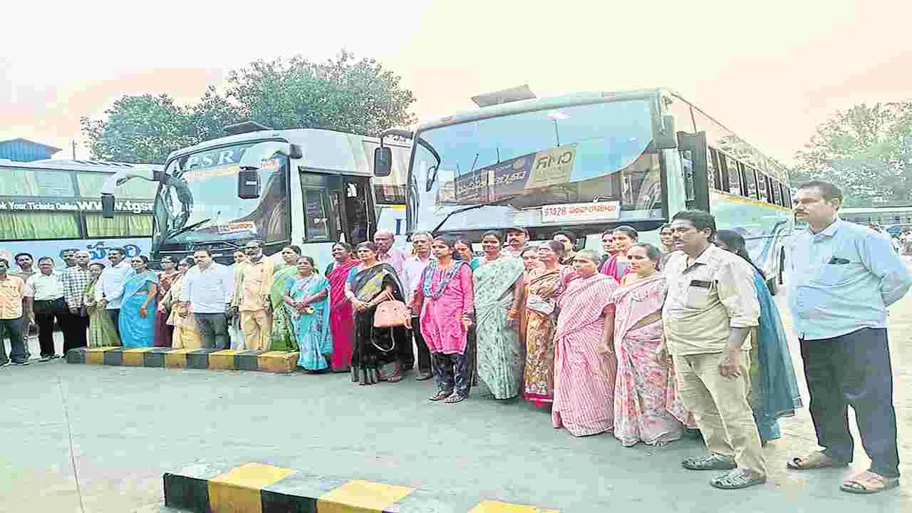 పంచారామాల క్షేత్ర దర్శినికి సంబంధించి మూడు ప్రత్యేక సర్వీసులు ఆదివారం సాయంత్రం ద్వారకాబస్స్టేషన్ నుంచి బయల్దేరాయి.