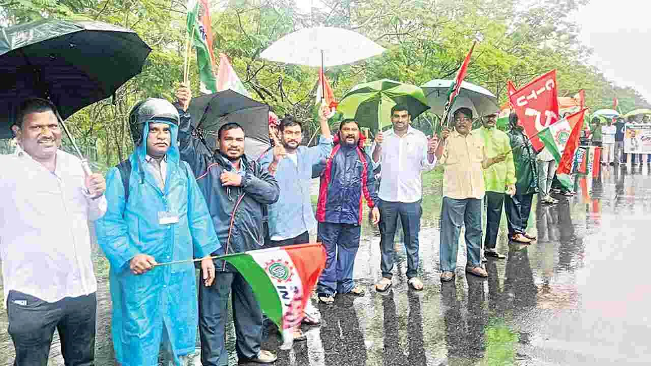 కార్మిక సంఘాల ఆందోళన