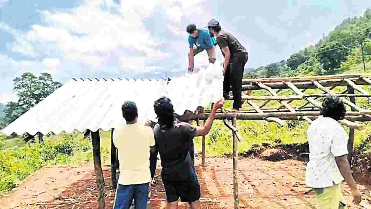 చందాలు వేసుకుని తాత్కాలికంగా రేకుల షెడ్డు నిర్మించిన గ్రామస్థులు