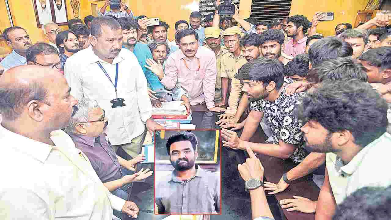 ఆంధ్ర విశ్వవిద్యాలయం హాస్టల్ విద్యార్థి ఒకరు గురువారం ఉదయం సకాలంలో వైద్యం అందకపోవడంతో మృతిచెందారు. దీనిపై విద్యార్థులు ఆందోళనకు దిగారు. తమ సమస్యలు పట్టించుకోని వైస్ చాన్సలర్ రాజీనామా చేయాలంటూ ఆయన ఛాంబర్లోకి దూసుకువెళ్లారు. ఈ తరుణంలో వీసీకి ప్రొఫెసర్లు, సిబ్బంది రక్షణగా నిలిచారు. కాగా, శుక్రవారం యూనివర్సిటీ బంద్ చేయాలని విద్యార్థి సంఘ నాయకులు పిలుపునిచ్చారు.