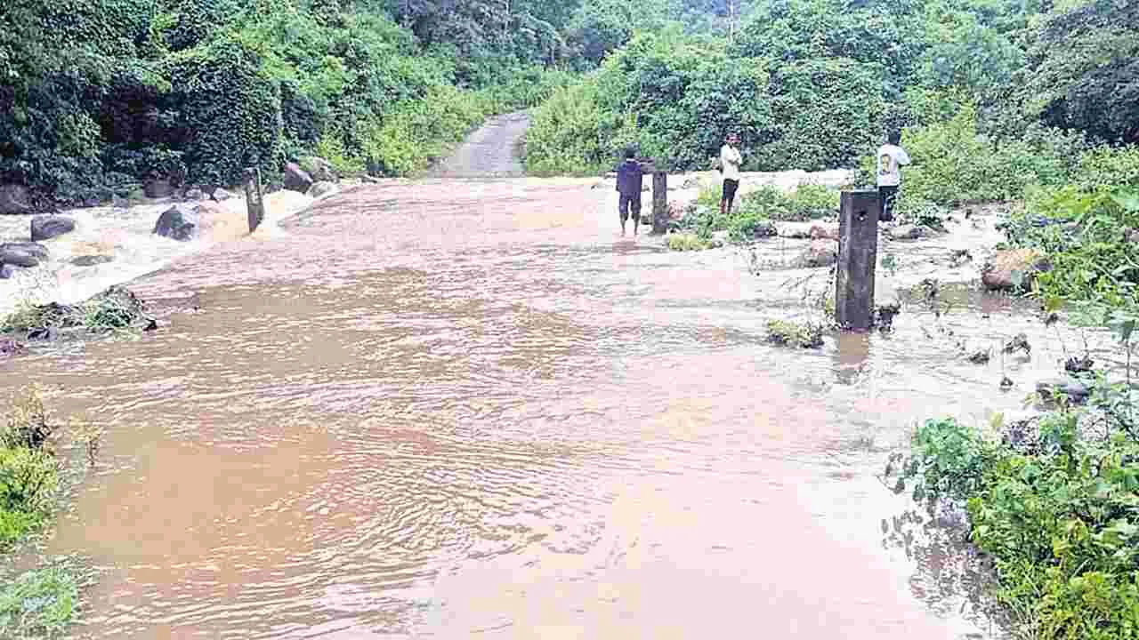అనంతగిరి: మండలంలో గురువారం కురిసిన భారీ వర్షానికి గెడ్డలు, వాగులు పొంగి ప్రవహించాయి. అనంతగిరి, కాశీపట్నం, చిలకలగెడ్డ, గుమ్మకోట గెడ్డలు ఉధృతంగా ప్రవహిస్తున్నాయి. పెదకోట- కుడియా మధ్యలోని కాజ్వే పైనుంచి వరద నీరు ఉధృతంగా ప్రవహించడంతో సుమారు నాలుగు గంటలపాటు పాటు రాకపోకలు నిలిచిపోయాయి. పినకోట, పెదకోట, కివర్ల పంచాయతీలోని సుమారు 20 గ్రామాలకు రాకపోకలకు అంతరాయం ఏర్పడింది.