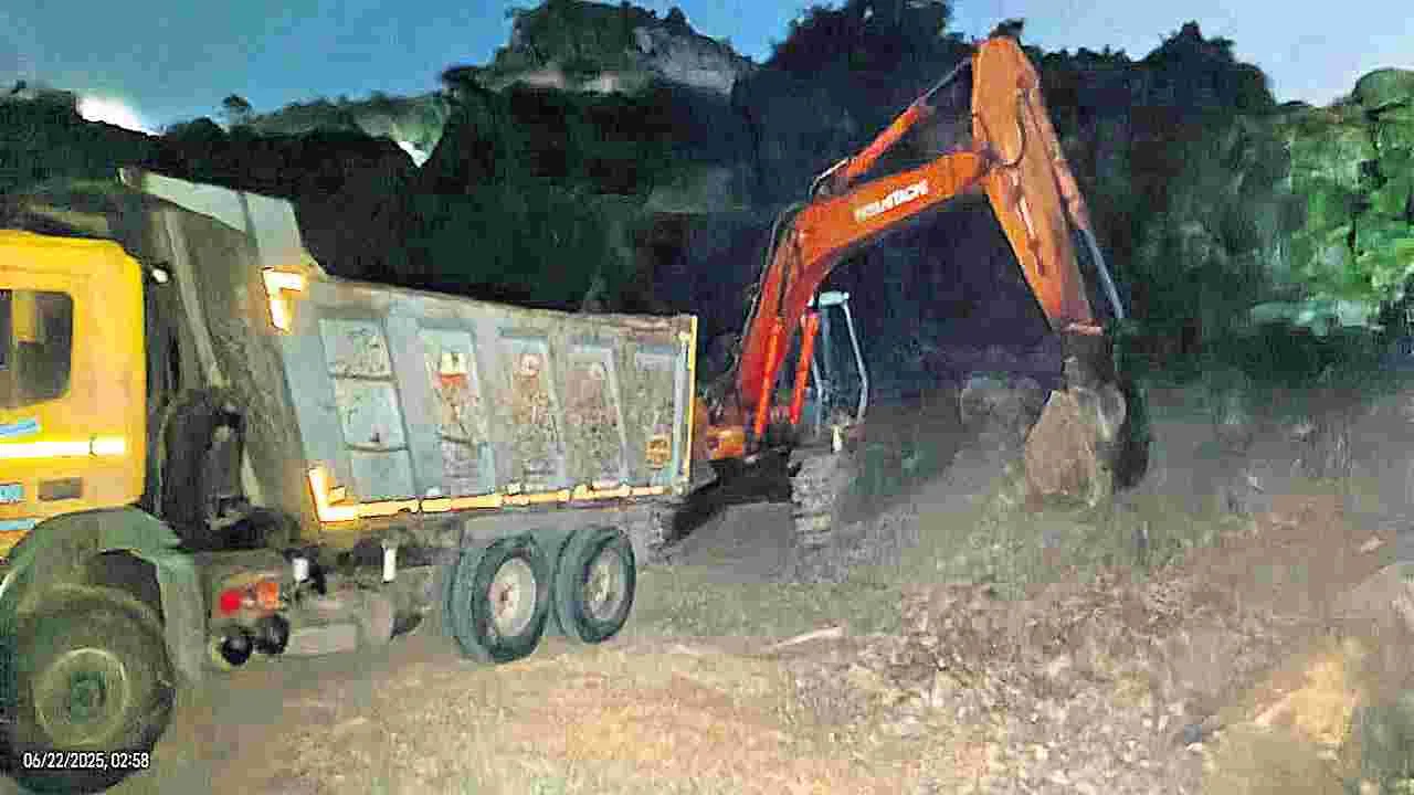 కొత్తగా క్వారీయింగ్కు కేంద్ర అటవీ, పర్యావరణ మంత్రిత్వ శాఖ నుంచి అనుమతులు ఉండాలి. అంత సులువుగా అనుమతులు రావడం లేదు. దీంతో ఉమ్మడి జిల్లాలో కొంతమంది ఎటువంటి అనుమతులు తీసుకోకుండానే కొందరు కొండలను తవ్వేస్తున్నారు. స్థానికంగా ఎవరైనా ఫిర్యాదు చేస్తే గనుల శాఖ దాడులు చేస్తోంది. ఒకేరోజు ఎక్కువ ఫిర్యాదులు వస్తే ఒకటి లేదా రెండుచోట్ల మాత్రమే దాడులు చేయగలుగుతోంది. అనకాపల్లి జిల్లాలోని పలుచోట్ల నుంచి ప్రతిరోజు రాత్రి రాంబిల్లిలో నిర్మాణంలో ఉన్న నేవల్ ప్రాజెక్టుకు 100 లారీల బండరాళ్లు వెళుతున్నాయి. గడచిన వారం, పది రోజుల్లో పెందుర్తి మండలం గుర్రంపాలెం, నరవల్లో అక్రమంగా గ్రావెల్ తవ్వుతున్న యంత్రాలను సీజ్ చేసి పోలీసులకు అప్పగించారు. ఆనందపురంలో ప్రభుత్వ డిగ్రీ కళాశాల కోసం కేటాయించిన కొండను చదునుచేసే కాంట్రాక్టర్ ఎటువంటి అనుమతి తీసుకోలేదు. అక్కడ మట్టి, గ్రావెల్ను తవ్వుతున్న మిషనరీని, లంకెలపాలెం సమీపాన పెదముషిడివాడలో సెంటు భూమి ఇళ్ల కోసం వేసిన లేఅవుట్ పక్కనే గ్రావెల్ తవ్వుతున్న యంత్రాలను పట్టుకున్నారు. గురువారం అనకాపల్లి సమీపాన ఊడేరులో రాళ్ల క్వారీలో యంత్రాలను స్వాధీనం చేసుకున్నారు. అయితే గనుల శాఖ విజిలెన్స్, రెగ్యులర్ సిబ్బంది దాడులు చేసి యంత్రాలను స్వాధీనం చేసుకున్న వెంటనే కూటమి పార్టీల నేతలు, ప్రజా ప్రతినిధులు రంగంలోకి దిగుతున్నారు. కొందరు అయితే బెదిరింపులకు పాల్పడుతున్నారు. నగర శివారుల్లో ఒక అక్రమ క్వారీ వద్ద యంత్రాలు పట్టుకుని పోలీసులకు అప్పగించిన వెంటనే కూటమి నేతలు ...గనుల శాఖ విజిలెన్స్ అధికారులకు ఫోన్ చేసి బెదిరించారు. ఈ నేపథ్యంలో ఉమ్మడి జిల్లాలో అక్రమ క్వారీయింగ్పై ఉన్నతాధికారులకు నివేదిక పంపినట్టు తెలిసింది. అక్రమ క్వారీయింగ్ను అడ్డుకట్ట వేసేందుకు కీలక ప్రాంతాల్లో చెక్పోస్టులు ఏర్పాటుచేస్తే మంచిదని విజిలెన్స్ విభాగం అధికారి ఒకరు పేర్కొన్నారు.