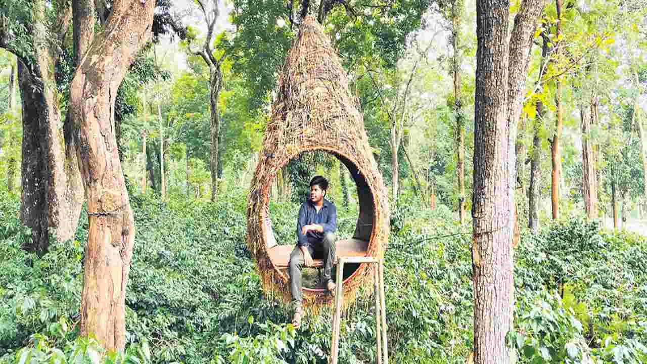 చింతపల్లి, జూన్ 22 (ఆంధ్రజ్యోతి): మండలంలోని చిన్నగెడ్డ ఏపీఎఫ్డీసీ కాఫీ ఎస్టేట్లో సందర్శకుల కోసం అధికారులు ఏర్పాటు చేసిన బర్డ్నెస్ట్(పక్షి గూడు) అమితంగా ఆకట్టుకుంటోంది. లంబసింగి, చింతపల్లి సందర్శనకు వచ్చిన పర్యాటకులతో పాటు ఈ మార్గంలో వెళ్లే ప్రయాణికులు బర్డ్నెస్ట్ వద్ద ఫొటోలు తీసుకునేందుకు ఆసక్తి చూపుతున్నారు. అరకులోయ మండలం సుంకరిమెట్ట కాఫీ తోటల వద్ద ఏపీఎఫ్డీసీ అధికారులు ఏర్పాటు చేసిన ‘కేనోపి వాక్’(ఉడెన్ బ్రిడ్జి)కి పర్యాటకుల నుంచి మంచి ఆదరణ లభిస్తోంది. దీంతో చిన్నగెడ్డ ఎస్టేట్ పరిధి పెదబరడ పంచాయతీ వంగసార గ్రామానికి సమీపంలో రెండెకరాల కాఫీ తోటల్లో ‘కాఫీ బెర్రీ పికింగ్ టూర్’ పేరిట సందర్శక ప్రాంతాన్ని ఏర్పాటు చేశారు. కాఫీ తోటల మధ్యలో ట్రెక్కింగ్ పాత్, ట్రీడెక్, బర్డ్నెస్ట్ ఏర్పాటు చేశారు. పర్యాటకులు కాఫీ బెర్రీ పికింగ్ టూర్ను సందర్శించి బర్డ్నెస్ట్ వద్ద ఫొటోలు తీసుకునేందుకు ఆసక్తి చూపుతున్నారు. ప్రస్తుతం దీని సందర్శనకు ఏపీఎఫ్డీసీ అధికారులు ఎటువంటి రుసుము వసూలు చేయడంలేదు. అయితే పర్యాటక సీజన్లో అదనపు సదుపాయాలు కల్పించి ప్రవేశ రుసుము, ఫొటో షూట్కి అదనపు నగదు వసూలు చేయనున్నారు.
