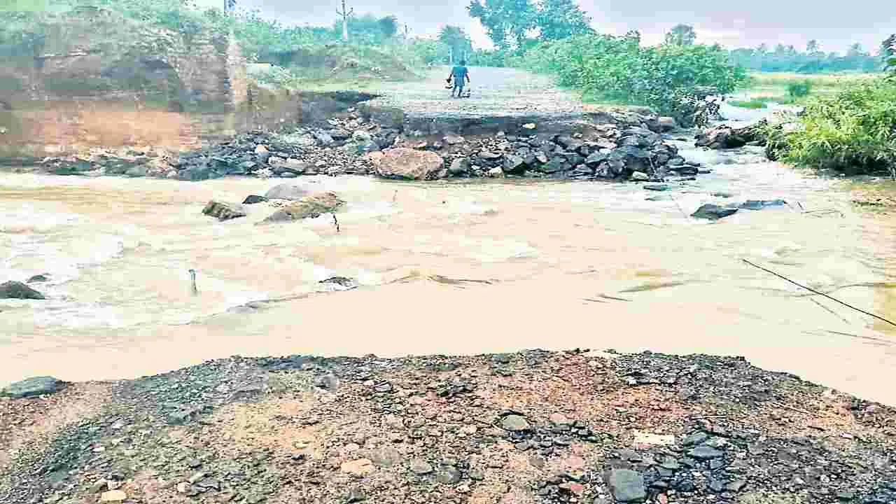 విజయరామరాజుపేట వద్ద కాజ్వే కొట్టుకుపోవడంతో ప్రజలకు రవాణా కష్టాలు