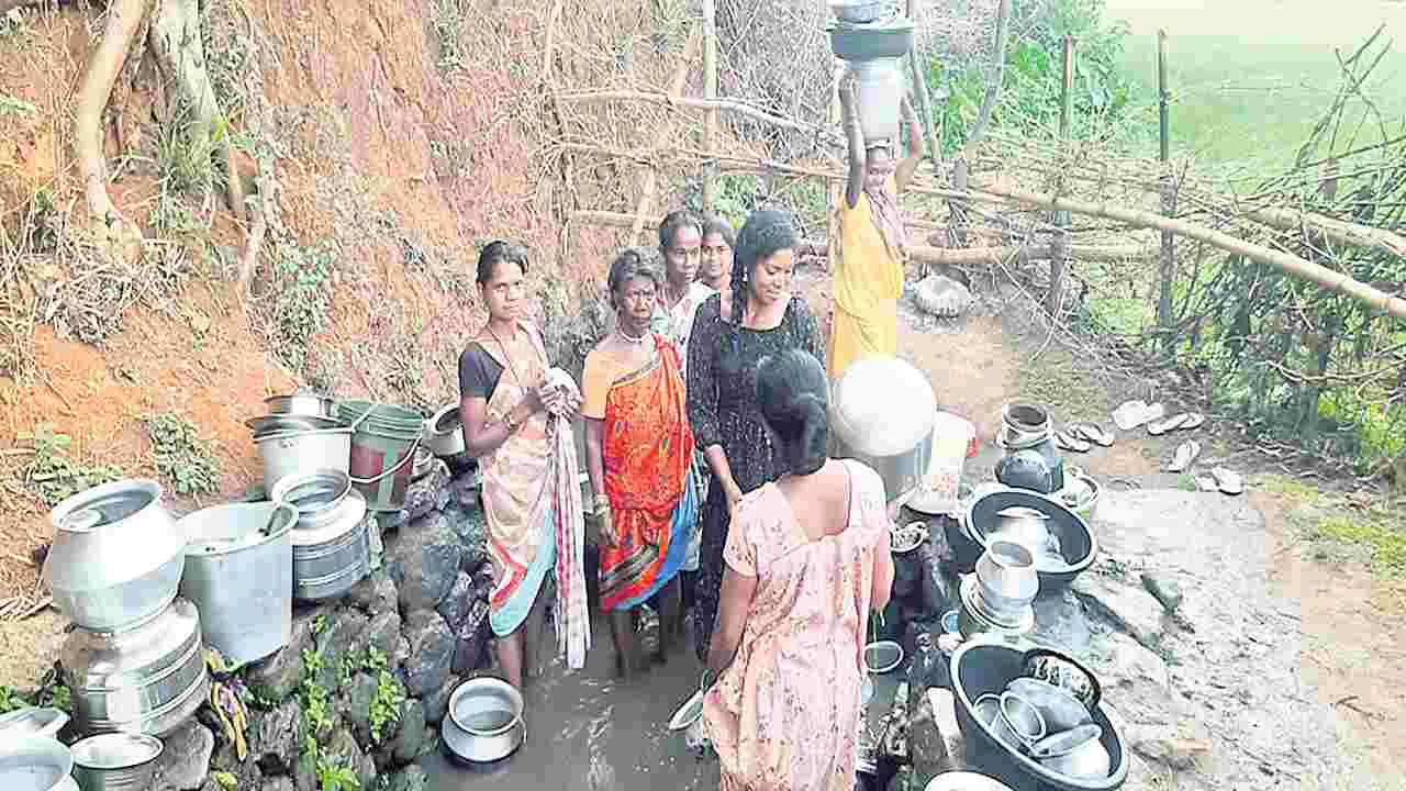 కిలోమీటరు దూరం నుంచి ఊట నీరు తెచ్చుకుంటున్న వైనం