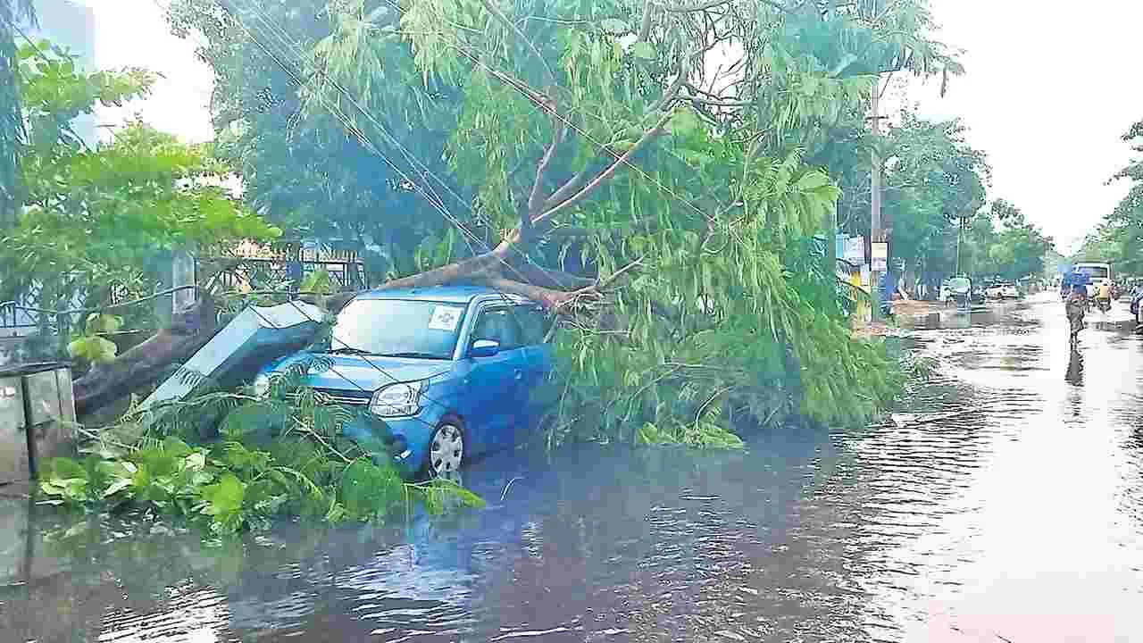 ఎలమంచిలిలో పలు చోట్ల నేలకొరిగిన చెట్లు, విరిగిపడిన విద్యుత్ స్తంభాలు