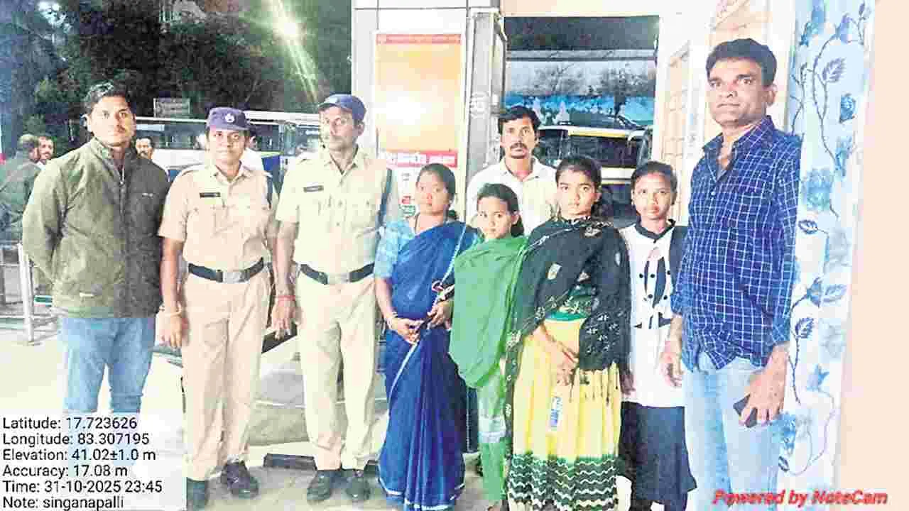 మండలంలోని రింతాడ బాలికల ఆశ్రమ పాఠశాలలో పది మంది విద్యార్థినులు అనుమతి లేకుండా చిక్కీలు తిన్నారని గదిలో మేట్రిన్ కొట్టడంతో ముగ్గురు పారిపోయారు. ఒకరోజు తరువాత ఇచ్చిన ఫిర్యాదుతో రంగంలోకి దిగిన పోలీసులు గంటల వ్యవధిలో విశాఖపట్నం ఆర్టీసీ కాంప్లెక్స్లో వారిని పట్టుకున్నారు.