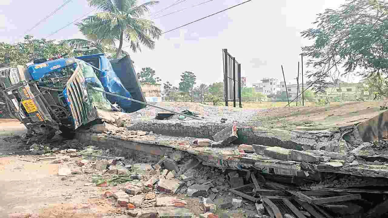 బస్షెల్టర్ను ఢీకొనడంతో కుప్పకూలిన కట్టడం
