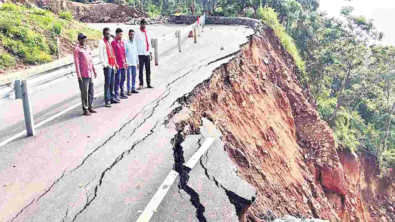 - వర్షాలకు కోతకు గురవుతున్న నూతన జాతీయ రహదారి