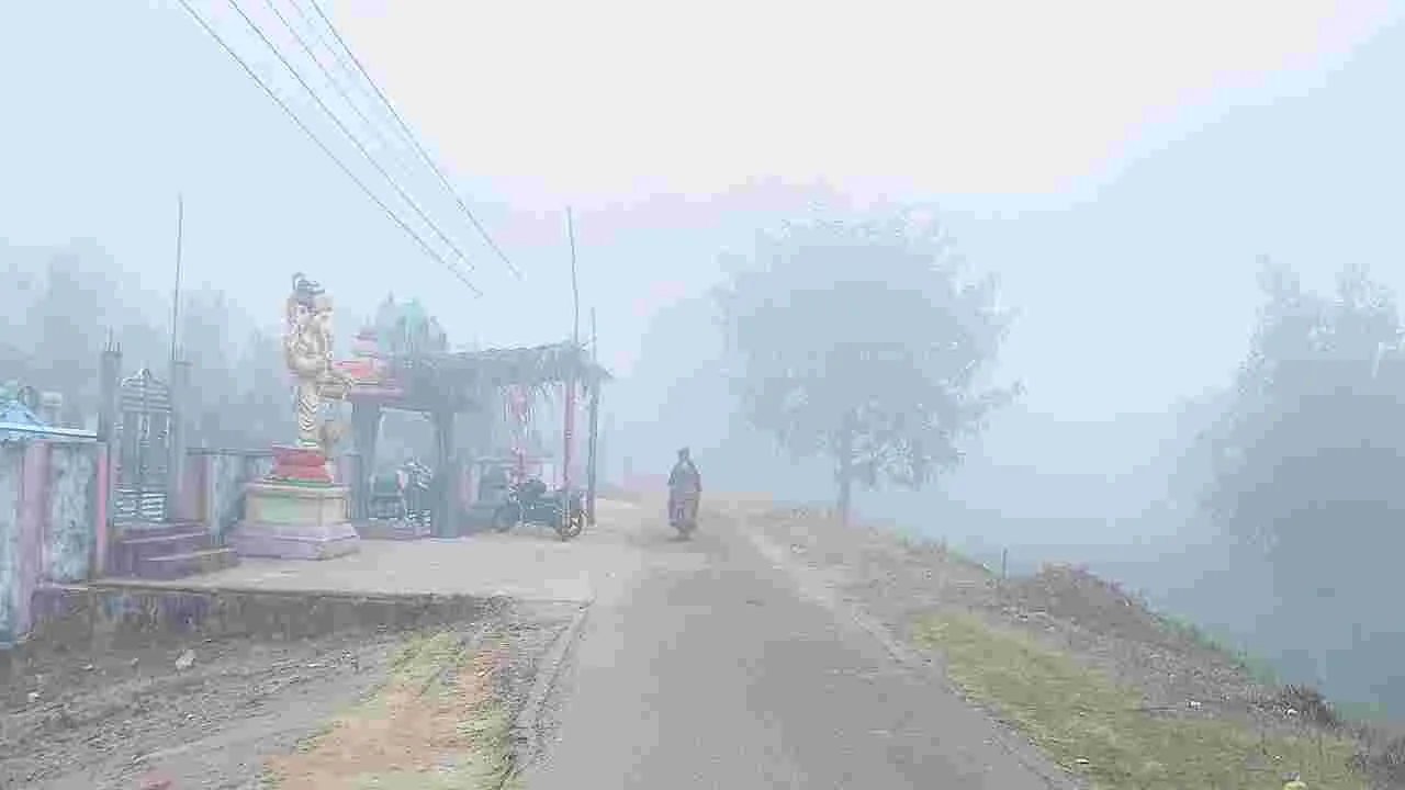 మండలంలో శనివారం చలి తీవ్రత పెరిగింది. ప్రధాన రహదారులపై దట్టమైన పొగ మంచు అలుముకుంది. ఉదయం తొమ్మిది దాటిన మంచు తెరలు వీడలేదు. వాహనదారులకు రోడ్డు కనిపించని పరిస్థితి నెలకొంది. దీంతో లైట్లు వేసుకొని నెమ్మదిగా రాకపోకలు సాగిస్తున్నారు.