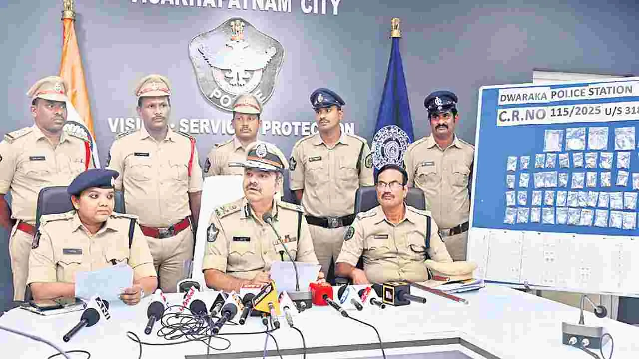 సుమారు రూ.1.29 కోట్ల విలువైన బంగారు ఆభరణాలు, వజ్రాల (డైమండ్స్)తో పరారైన ఓ డైమండ్ షోరూమ్ మార్కెటింగ్ ఎగ్జిక్యూటివ్తో పాటు మరొకరిని అరెస్టు చేసినట్టు నగర పోలీస్ కమిషనర్ డాక్టర్ శంఖబ్రతబాగ్చి తెలిపారు. శుక్రవారం కమిషనరేట్లో నిర్వహించిన విలేకరుల సమావేశంలో ఆయన వివరాలు వెల్లడించారు. డాక్టర్ అంబేడ్కర్ కోనసీమ జిల్లా అమలాపురం ప్రాంతానికి చెందిన ముదపాక జేజి (49) హైదరాబాద్కు చెందిన క్రిష్ డైమండ్ షోరూమ్లో ఆరు నెలల క్రితం మార్కెటింగ్ ఎగ్జిక్యూటివ్గా చేరాడు. షోరూమ్లోని డైమండ్, బంగారు ఆభరణాల మోడల్స్ను విశాఖలోని వివిధ గోల్డ్ షోరూమ్లలో చూపించేందుకు అదే సంస్థలో పనిచేస్తున్న బొగ్గు వంశీ అనే మరో మార్కెటింగ్ ఎగ్జిక్యూటివ్తో కలసి ఈ నెల మూడో తేదీన విశాఖపట్నం వచ్చారు. ఆర్టీసీ కాంప్లెక్స్ ఎదురుగా ఉన్న హోటల్లో గది తీసుకొని ఇద్దరూ బస చేశారు. ఆరోజు వివిధ షోరూమ్లలో ఆభరణాల మోడల్స్ చూపించి తిరిగి తీసుకువచ్చారు. మరుసటిరోజు తెల్లవారుజామున సుమారు ఐదు గంటల సమయంలో తనతో పాటు వచ్చిన వంశీ నిద్రిస్తున్న సమయంలో ముదపాక జేజి ఆభరణాల బ్యాగ్తో పరారయ్యాడు. నిద్ర నుంచి లేచి చూసిన వంశీకి జేజితో పాటు ఆభరణాల బ్యాగ్ కనిపించలేదు. సీసీ ఫుటేజీలు పరిశీలించి బ్యాగ్తో పరారైనట్టు గుర్తించి వెంటనే పోలీసులకు ఫిర్యాదు చేశాడు. కేసు నమోదు చేసిన పోలీసులు సీఐ ఉమాకాంత్ ఆధ్వర్యంలో దర్యాప్తు చేపట్టారు. శుక్రవారం ఉదయం రైల్వే ట్రాక్ వద్ద అనుమానాస్పదంగా ఇద్దరు బ్యాగ్తో కనిపించడంతో వారిని అదుపులోకి తీసుకొని తనిఖీచేశారు. ఆభరణాలు కనిపించడంతో వాటిని స్వాధీనం చేసుకున్నారు. అందులో ఒకరు ముదపాక జేజి కాగా మరొకరి పేరు ఆకుల సత్యనారాయణ. ఇద్దరినీ అరెస్టు చేసి రిమాండ్కు తరలించారు. వారి వద్ద నుంచి రూ.1,29,48,154 విలువైన వజ్రాలు, బంగారు ఆభరణాలను స్వాధీనం చేసుకున్నట్టు కమిషనర్ బాగ్చి పేర్కొన్నారు.