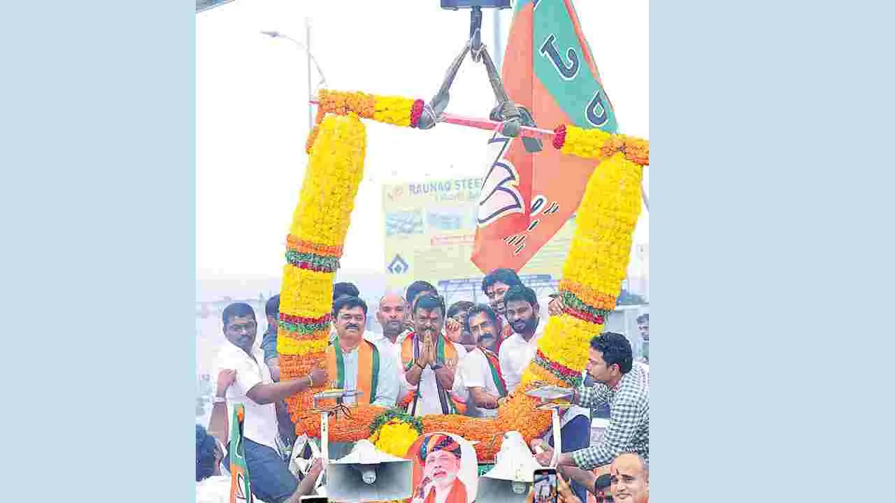 బీజేపీ రాష్ట్ర అధ్యక్షుడు మాధవ్కు ఘనస్వాగతం
