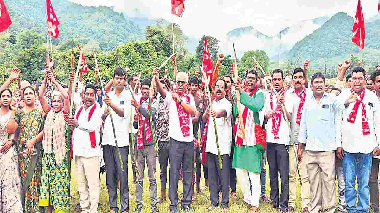 అనంతగిరి, జూలై 24(ఆంధ్రజ్యోతి): మండలంలోని పెదకోట పంచాయతీ రేగులపాలెం వద్ద హైడ్రో పవర్ ప్రాజెక్టు నిర్మాణాన్ని అడ్డుకుంటామని సీపీఎం రాష్ట్ర కార్యదర్శి వి.శ్రీనివాసరావు ప్రకటించారు. రేగులపాలెం వద్ద గురువారం హైడ్రో పవర్ ప్రాజెక్టుకు వ్యతిరేకంగా జడ్పీటీసీ సభ్యుడు దీసరి గంగరాజు ఆధ్వర్యంలో బహిరంగ సభ ఏర్పాటు చేశారు. ఈ సభకు తముటు, చింతలపాలెం, కొండిబకోట, రేగులపాలెం గిరిజనులు అధిక సంఖ్యలో హాజరయ్యారు. ఈ సందర్భంగా వి.శ్రీనివాసరావు మాట్లాడుతూ గిరిజన సలహా మండలిలో హైడ్రో పవర్ ప్రాజెక్టును రద్దు చేస్తూ తీర్మానం చేయాలని డిమాండ్ చేశారు. గిరిజనుల ఉనికి మీద దెబ్బకొట్టేందుకు పెద్ద కుట్రలే జరుగుతున్నాయని, ప్రాజెక్టును అడ్డుకుంటామన్నారు. హైడ్రో పవర్ ప్రాజెక్టు కారణంగా తముటు, చింతలపాలెం, రేగులపాలెం, కొండిబకోట గ్రామాలు తీవ్రంగా నష్టపోతాయన్నారు. గిరిజన ప్రాంతం హక్కులు, చట్టాలను తుంగలో తొక్కి కార్పొరేట్ కంపెనీల పెత్తనమేమిటని ప్రశ్నించారు. ప్రాజెక్టులకు అనుకూలంగా ఇచ్చిన జీవో నంబర్ 51ను రద్దు చేసి, గిరిజనుల పక్షాన పాలకులు నిలబడాలని డిమాండ్ చేశారు. అనంతరం రేగులపాలెం సమీపంలోని గెడ్డ వద్దకు వెళ్లి బాణం, విల్లు ఎక్కిపెట్టి నిరసన తెలిపారు. ఈ కార్యక్రమంలో పార్టీ కేంద్ర కమిటీ సభ్యుడు కె.లోకనాథం, రాష్ట్ర కార్యవర్గ సభ్యుడు కిల్లో సురేంద్ర, జిల్లా కార్యదర్శి అప్పలనర్స, జడ్పీటీసీ సభ్యుడు గంగరాజు, నాయకులు వెంకన్న, ఉమామహేశ్వరావు, సర్పంచ్ అన్నపూర్ణ, ఎంపీటీసీ సభ్యురాలు శ్రావణి, తదితరులు పాల్గొన్నారు.