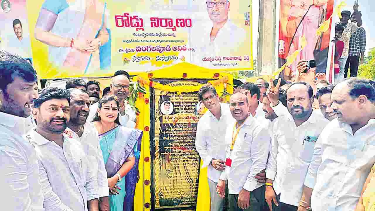పాయకరావుపేట రూరల్, అక్టోబరు 18 (ఆంధ్రజ్యోతి): సంక్షేమం, అభివృద్ధిని ఏకతాటిపై నడిపించడమే ముఖ్యమంత్రి చంద్రబాబునాయుడు ధ్యేయమని రాష్ట్ర హోం మంత్రి వంగలపూడి అనిత అన్నారు. మండలంలోని రాజగోపాలపురం నుంచి కందిపూడి, పాయకరావుపేట నుంచి మంగవరం, గుంటపల్లి నుంచి ఒడ్డిమెట్ట మీదుగా ఎన్హెచ్-16 రోడ్డుకు వెళ్లే రహదారుల నిర్మాణానికి శనివారం ఆమె శంకుస్థాపన చేశారు. అలాగే గుంటపల్లిలో సుమారు రూ.21.8 లక్షలతో నిర్మించిన రైతు సేవా కేంద్రాన్ని, సుమారు రూ.25 లక్షలతో నిర్మించిన సచివాలయాన్ని ఆమె ప్రారంభించారు. ఈ సందర్భంగా ఆమె మాట్లాడుతూ మండలంలో రాజగోపాలపురం నుంచి కందిపూడి వరకు నాబార్డు నిధులు సుమారు రూ.60 లక్షలతో 2.2 కిలోమీటర్ల రోడ్డును, గుంటపల్లి నుంచి ఎన్హెచ్-16 వరకు నాబార్డు నిధులు సుమారు రూ.85 లక్షలతో 2 కిలోమీటర్ల రోడ్డు, పాయకరావుపేట నుంచి మంగవరం రోడ్డు సుమారు కోటి రూపాయలతో 5 కిలోమీటర్ల రోడ్డును నిర్మిస్తున్నట్టు ఆమె తెలిపారు. పాయకరావుపేట పట్టణంలో త్వరలోనే అన్న క్యాంటీన్ ప్రారంభిస్తామన్నారు. కూటమి పాలనలో సూపర్ సిక్స్ పథకాలు సూపర్ హిట్ అయ్యాయన్నారు. గత వైసీపీ పాలనలో కనీసం రోడ్లు, డ్రైనేజీలను కూడా నిర్మించలేదన్నారు. ఈ సందర్భంగా మహిళలు పలు సమస్యలను హోం మంత్రి దృష్టికి తీసుకురాగా, వెంటనే వాటిని పరిష్కరించాలని అధికారులను ఆదేశించారు. ఈ కార్యక్రమంలో టీడీపీ మండల అఽధ్యక్షుడు చించలపు ప్రదీప్, పట్టణ అధ్యక్షుడు యాళ్ళ వరహాలు, జనసేన నాయకుడు గెడ్డం బుజ్జి, మార్కెట్ కమిటీ చైర్మన్ దేవర సత్యనారాయణ, పీఆర్ ప్రాజెక్ట్సు డీఈఈ కుమారరాజా, తహశీల్దార్ ఎస్.ఎ.మహేశ్వరరావు, ఎంపీడీవో విజయలక్ష్మి, ఏపీవోలు నానిబాబు, శ్రీనువాసరావు, టీడీపీ నాయకులు కొప్పిశెట్టి వెంకటేశ్, పెదిరెడ్డి చిట్టిబాబు, తదితరులు పాల్గొన్నారు.