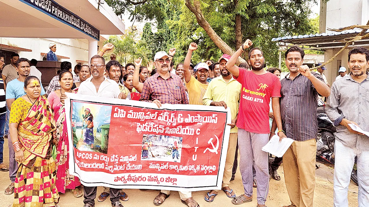 బెలగాం, జూన్ 16 (ఆంధ్రజ్యోతి): తమ సమస్యలను పరిష్కరించాలని కోరుతూ పలు సంఘాల నాయకులు చేపట్టిన ఆందోళనలతో సోమవారం కలెక్టరేట్ హోరెత్తిం ది. మున్సిపల్ కార్మికులను తల్లికి వందనం పథకానికి అనర్హులుగా గుర్తించి అమలు చేయకపోవడం దారుణమ ని సీఐటీయూ ఆధ్వర్యంలో ఆందోళన చేపట్టారు. మున్సి పల్ కార్మికులకు కూడా ప్రభుత్వ సంక్షేమ పథకాలు అమలు చేయాలని డిమాండ్ చేశారు.