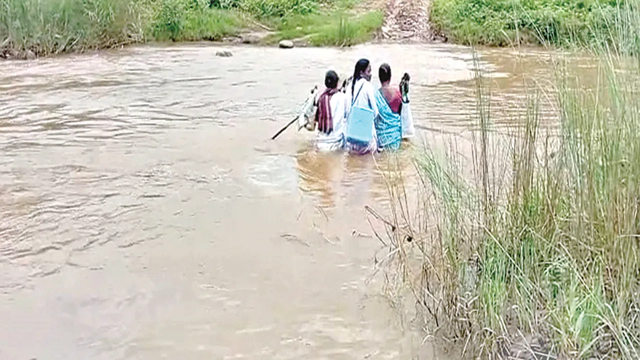 Vaccines వాగు దాటి.. వ్యాక్సిన్లు వేసి
