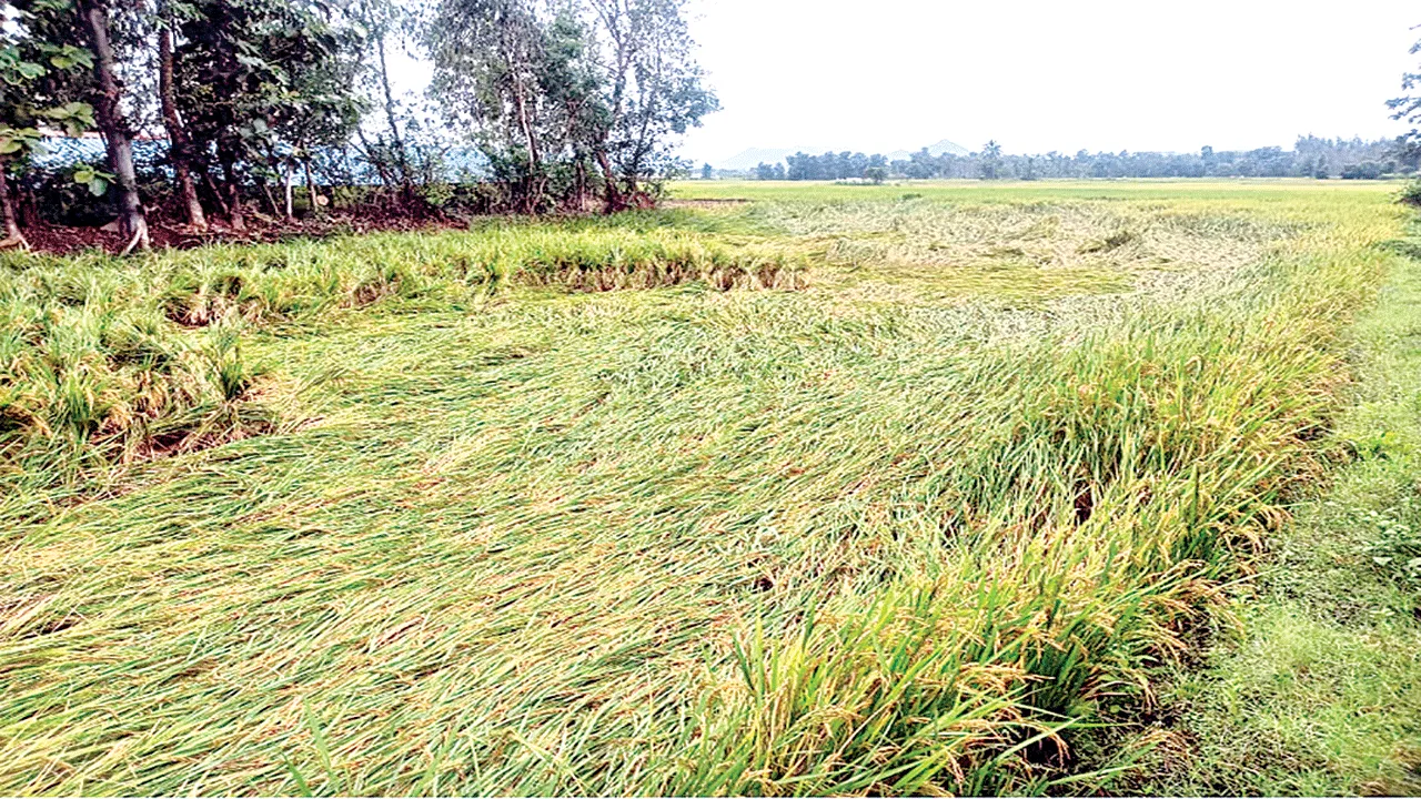 నేలవాలిన వరిపైరు