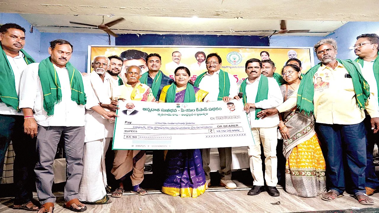 Farmers' Welfare is the Goal రైతుల సంక్షేమమే లక్ష్యంగా కూటమి ప్రభుత్వం పని చేస్తోందని మంత్రి గుమ్మిడి సంధ్యారాణి తెలిపారు. శనివారం పట్టణంలోని కోదండరామ కల్యాణ మండపంలో ‘అన్నదాత సుఖీభవ’ కార్యక్రమం నిర్వహించారు. ఈ సందర్భంగా ఆమె మాట్లా డుతూ.. వ్యవసాయరంగ అభివృద్ధి కోసం ప్రభుత్వం భవిష్యత్లో మరిన్ని సంక్షేమ పథకాలను అమలు చేయనుందన్నారు.