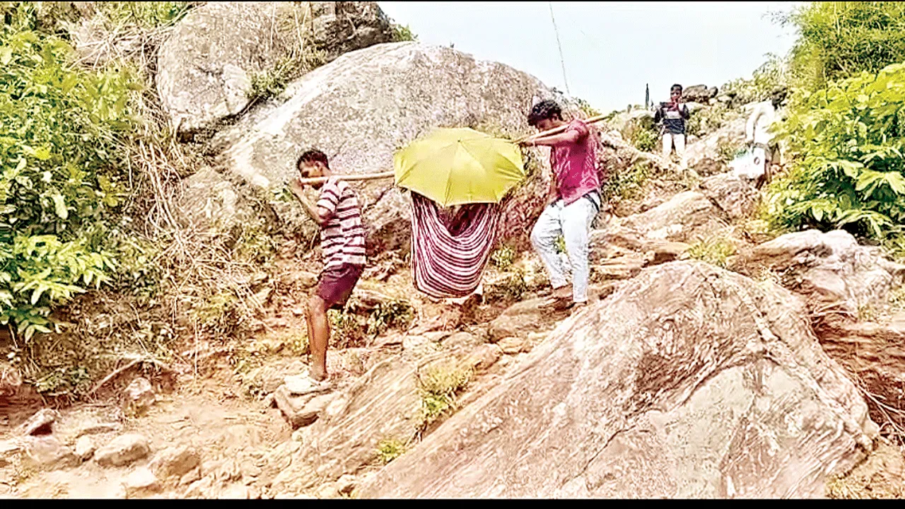 శృంగవరపుకోట, మే 17(ఆంధ్రజ్యోతి): శృంగవరపుకోట శివారు రేగపుణ్యగిరి గిరిజనులు పడుతున్న కష్టాలు అన్నిఇన్ని కావు. ఎవరైనా అనారోగ్యం బారిన పడితే ఆస్పత్రికి తీసుకువెళ్లడమే పెద్ద పరీక్షగా మారింది. రోడ్డు నిర్మాణం చేపట్టకపోవడంతో డోలీ మోతలు తప్పడం లేదు. గ్రామానికి చెందిన వృద్ధురాలు పంగి లింబయ్యమ్మ జ్వరం బారిన పడి తీవ్ర అస్వస్థకు గురికావడంతో శనివారం బంధువులు నర్సింగరావు, రాజులు డోలీ కట్టారు. కొండపై నుంచి అతి కష్టం మీద కిందకు దించారు. కలెక్టర్ అంబేడ్కర్ ఈ గ్రామానికి రోడ్డు వేసేందుకు నిధులు అందించినప్పటికీ పంచాయతీరాజ్ శాఖ అధికారులు నిర్లక్ష్యం వహిస్తున్నారని గ్రామస్థులు ఆరోపిస్తున్నారు.