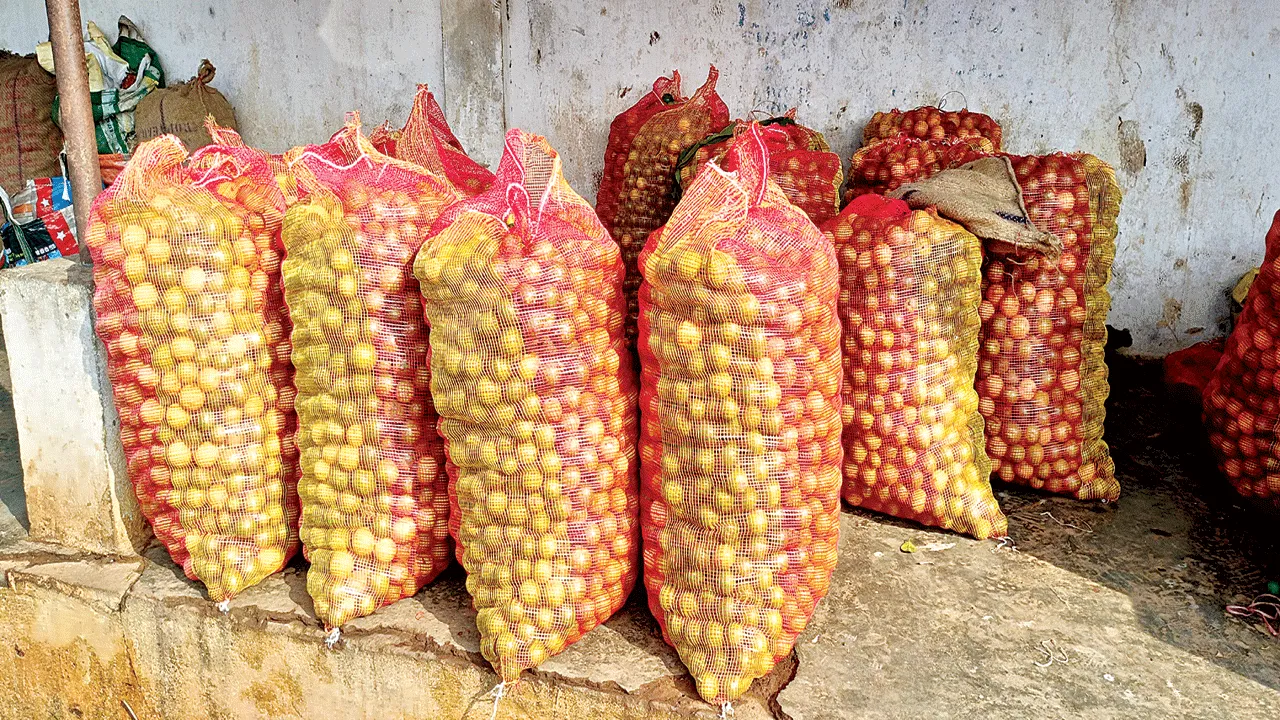 సీతంపేట రూరల్, జూలై 20(ఆంధ్రజ్యోతి): ఏజెన్సీలో గిరిజన రైతులు సేకరించే అటవీ ఉత్పత్తుల్లో నిమ్మ పంట ఒకటి. అయితే గడిచిన కొద్ది వారాలుగా నిమ్మకాయలకు ఆశించిన స్థాయిలో మద్దతు ధర రాలేదు. దీంతో గిరిజన రైతులు ఆవేదన చెందారు. ప్రస్తుతం సీన్ మారింది. సీతంపేట వారపు సంతలో ఆదివారం నిమ్మకాయలకు డిమాండ్ పెరిగింది. వాటిని కొనేందుకు మైదాన ప్రాంత వ్యాపారులు పోటీ పడ్డారు. గత వారం 45కేజీల నిమ్మకాయల బస్తా ధర రూ.450లు ఉండగా.. నేడు రూ.750కు చేరింది. ఒక్కసారిగా ధర పెరగడంతో గిరిజన రైతులు హర్షం వ్యక్తం చేస్తున్నారు. తమ కష్టానికి తగ్గ ప్రతిఫలం లభించిందనే సంతోషంతో ఇంటిదారి పట్టారు.