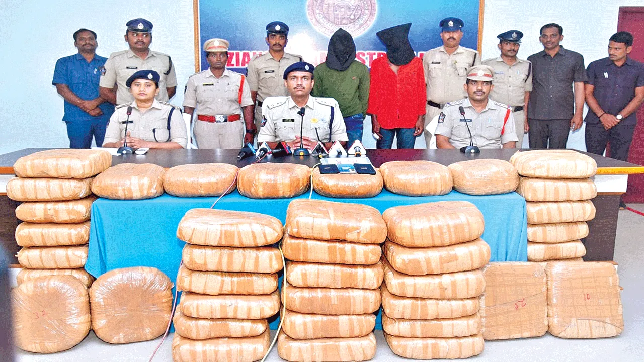 Odisha to Visakhapatnam గంజాయిని ఒడిశా నుంచి విశాఖకు తరలిస్తుండగా జిల్లా పోలీసులు పక్కా సమాచారంతో పట్టుకున్నారు. ఈగల్ విభాగం, పోలీసులు కలిసి మానాపురం గేటు వద్ద తనిఖీలు చేపట్టి రవాణాను అడ్డుకున్నారు. ఇద్దరు నిందితులను పట్టుకుని వారి నుంచి 230 కిలోల గంజాయిని స్వాధీనం చేసుకున్నారు. మరో ముగ్గురు నిందితులు పరారయ్యారు. ఎస్పీ వకుల్జిందాల్ జిల్లా పోలీసు కార్యాలయంలో సోమవారం ఏర్పాటు చేసిన విలేకర్ల సమావేశంలో ఆ వివరాలను వెల్లడించారు.
