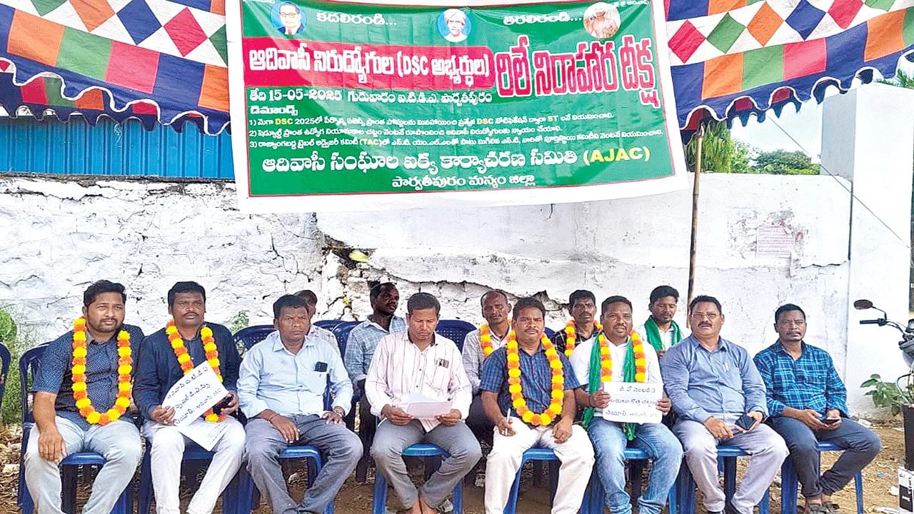 బెలగాం, మే 19 (ఆంధ్రజ్యోతి): స్థానిక ఐటీడీఏ వద్ద ఆంధ్రప్రదేశ్ గిరిజన సలహా మండలి(జేఏసీ) ఆధ్వర్యంలో చేపట్టిన రిలే దీక్షలు నాలుగు రోజు సోమవారం కూడా కొనసాగాయి. ప్రత్యేక డీఎస్సీ ద్వారా గిరిజన ప్రాంతాల ఉపాధ్యాయ పోస్టులను గిరిజనులతో భర్తీ చేయాలని డిమాండ్ చేస్తూ నాయకులు నినాదాలు చేశారు. జీవో నెంబర్-3 స్థానంలో కొత్త చట్టం తీసుకొచ్చి గిరిజనులకు న్యాయం జరిగే విధంగా ప్రభుత్వం చర్యలు తీసుకోవాలని డిమాండ్ చేశారు. ఈ కార్యక్రమంలో ఆదివాసీ చైర్మన్ కొండగొర్రె ధర్మారావు, ఏ.నీలకంఠం, సెక్రటరీ కె.జయన్న, వైస్ చైర్మన్లు డి.సీతారాం, రామకృష్ణ, చంద్రశేఖర్, మల్లయ్య, గిరిధర్, సాయిబాబా, ఆదివాసీ టీచర్స్ అసోసియేషన్ అధ్యక్ష, ఉపాధ్యక్షులు టి.సత్యనారాయణ, సూర్యనారాయణ, డీఎస్సీ అభ్యర్థులు పాల్గొన్నారు.