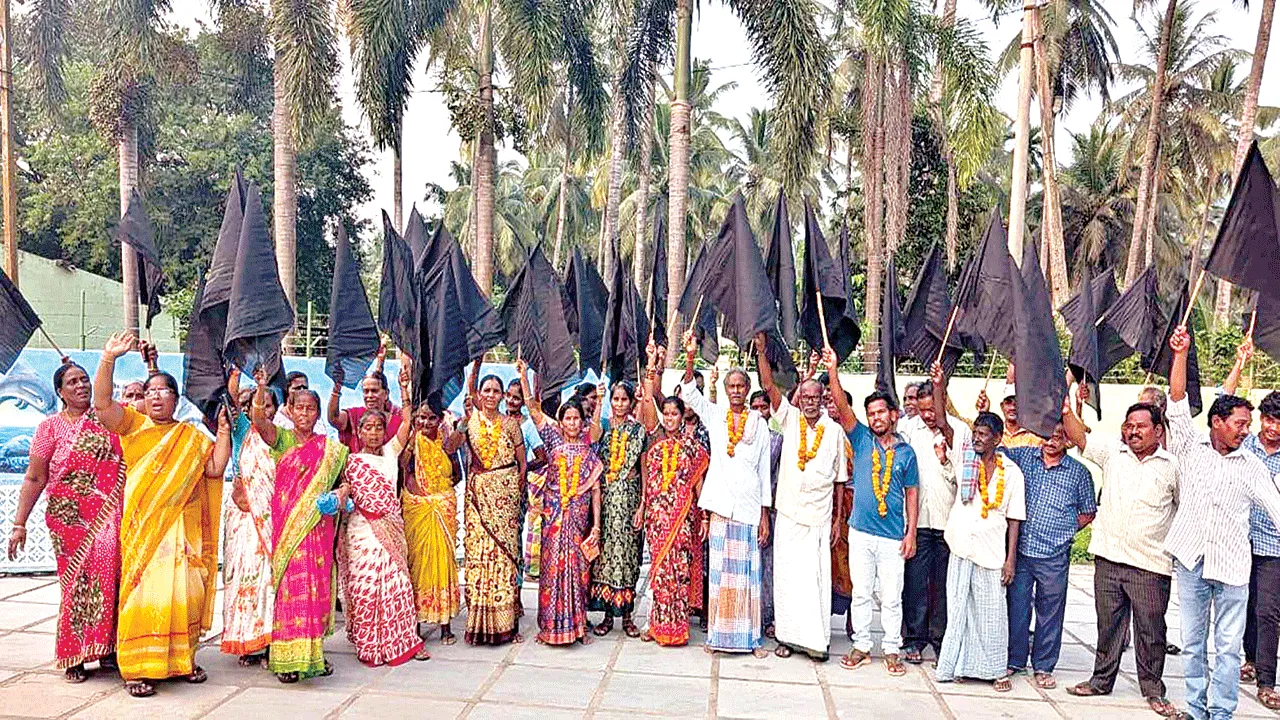 నల్లజెండాలతో నిర్వాసితుల నిరసన