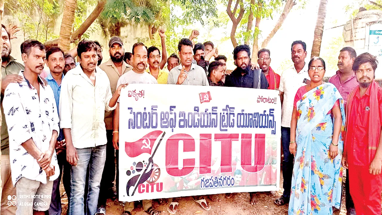 గజపతినగరం, నవంబరు14(ఆంధ్రజ్యోతి): పంచాయతీకార్మికులకు వేతన బకాయి లు చెల్లించకపోవడంతో శుక్రవారం సీఐటీయూ ఆధ్వర్యంలో సమ్మె బాట పట్టారు. గజపతినగరం, పురిటిపెంట పంచాయతీలకు చెందిన పారిశుధ్య కార్మికులుబకా యిలను చెల్లించాలని సచివాలయాలు వద్ద నిరసన వ్యక్తం చేశారు. కార్యక్రమంలో సీఐటీయూ నాయకులు లక్ష్మి, బి,కనకరాజు, కోటేశ్వరరావు, భాస్కరరావు పాల్గొన్నారు.