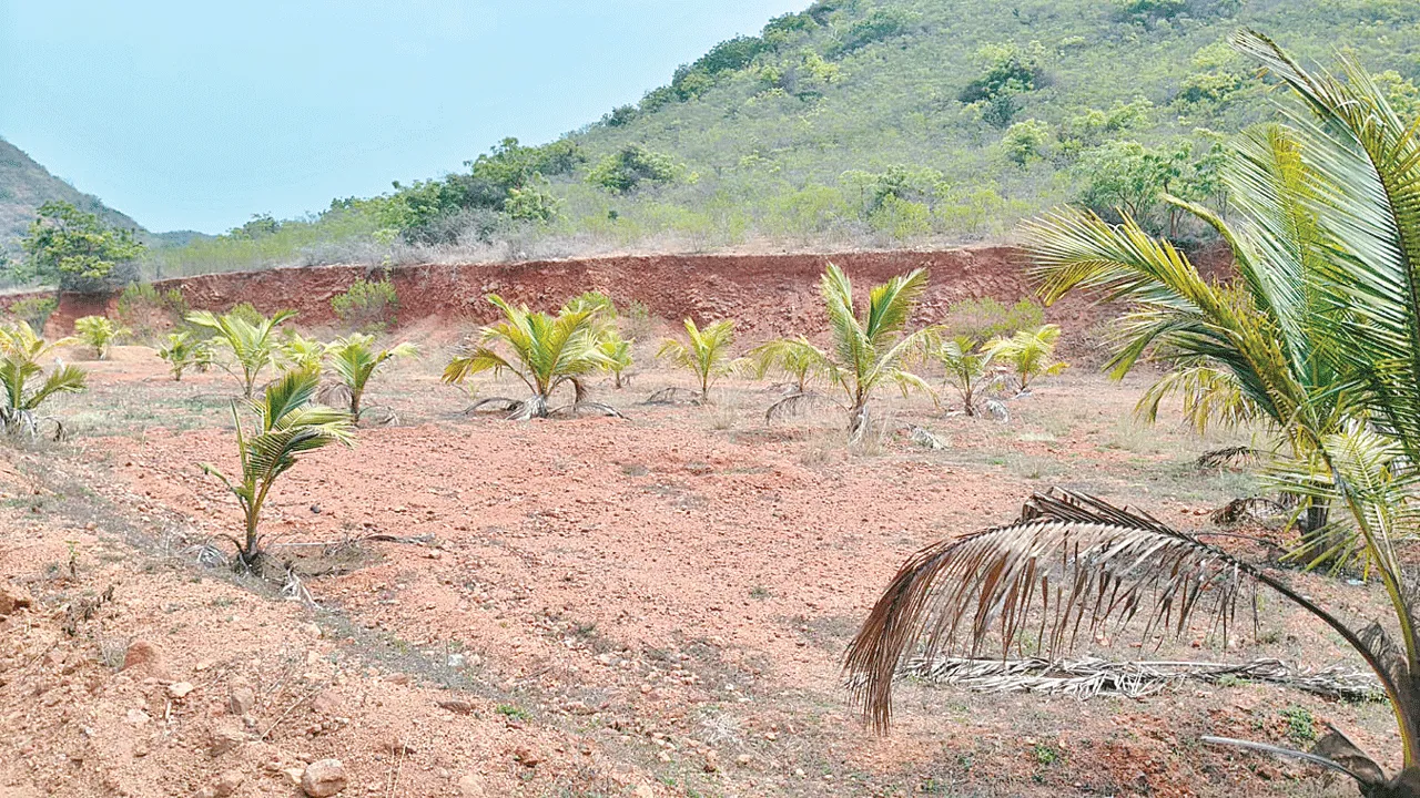 చౌడవాడ పంచాయతీలోని కోనయ్యపాలెం గ్రామంలో రెండు కొండలు విస్తరించి ఉన్నాయి. పది ఎకరాలకు పైగా కొండపోరంబోకు భూమిగా ఉండడంతో మూడేళ్ల కిందటి వరకు ఎవరూ అటువైపు చూడలేదు. అయితే సొంత ఇల్లు లేని స్థానిక పేదలు కొందరు కొండ దిగువ ప్రాంతంలో ఇళ్లు నిర్మించుకున్నారు. దీనిని ఆసరాగా చేసుకుని రంగంలోకి దిగిన ఆక్రమణదారులు నాలుగు ఎకరాల్లో ఉన్న కొండను పూర్తిగా స్వాధీనం చేసుకోవాలని ఎత్తుగడ వేశారు. వైసీపీ ప్రభుత్వ హయాంలో కీలక నేతల అండ తీసుకున్నారు. ఇంకేముంది సర్వే నెంబరు 17లోని పులికొండలో సుమారు నాలుగు ఎకరాల కొండ పోరంబోకు భూమిని చదును చేసి ఆక్రమించారు. ఎవరైనా ప్రశ్నిస్తే ముందు ఇళ్లను తొలగించండి ఆ తర్వాత ఆక్రమణల సంగతి చూద్దామనేవారు. దీనిపై మీడియాలోనూ అనేక కథనాలు రావడంతో నాటి రెవెన్యూ అధికారులు ఆ ప్రాంతానికి వచ్చి పరిశీలించారు. ఈ కొండ ప్రభుత్వానికి చెందినదని, ఆక్రమించకూడదని బోర్డులు పెట్టారు. అయితే ఆక్రమణదారులు ఏమాత్రం తగ్గకపోగా పట్టు బిగించి కీలక నేతలను ప్రసన్నం చేసుకున్నారు. వారి చేత ఫోన్లు చేయించి అధికారులపై ఒత్తిడి పెంచారు. ఈ తలనొప్పి తమకెందుకు అనుకున్నారేమో ఆ తర్వాత అధికారులు అటువైపు చూడలేదు. ఇక కబ్జాదారులు సొంత స్థలంగా భావించుకుని కొబ్బరి తోట వేశారు. నేటికీ ఆ భూమి వారి ఆధీనంలోనే ఉంది. దీనిపై ఎవరైనా ప్రశ్నిస్తే బెదిరింపులకు దిగుతున్నారు. ఇదే విషయమై తహసీల్దారు గోవింద్ను వివరణ కోరగా పరిశీలించి చర్యలు తీసుకుంటామన్నారు.