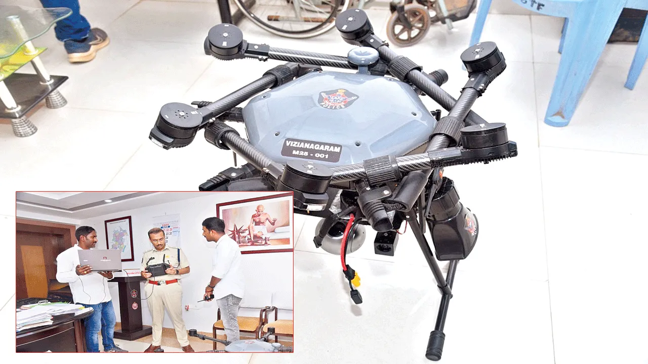 Tethered drone for the district అత్యధిక సమయం గాలిలో ఎగురుతూ ఖచ్చితమైన సమాచారం అందజేసే టెథర్డ్డ్రోన్ జిల్లాకు వచ్చేసింది. ప్రభుత్వం జిల్లా పోలీసులకు ప్రత్యేకంగా దీనిని కేటాయించింది. సభలు, సమావేశాలు, జాతర్లలో మరింత నిఘా పెంచేందుకు టెథర్డ్డ్రోన్ వినియోగిస్తామని ఎస్పీ వకుల్ జిందాల్ తెలిపారు.