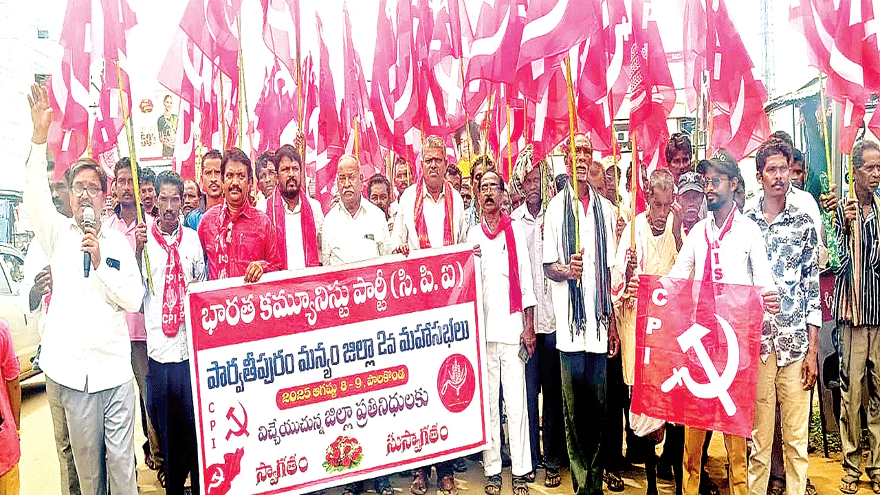 పాలకొండ, ఆగస్టు 8 (ఆంధ్రజ్యోతి): బడుగుల బలహీన వర్గాల అభ్యున్నతే భారత కమ్యూనిస్టు పార్టీ (సీపీఐ) లక్ష్యమని ఆ పార్టీ రాష్ట్ర కార్యదర్శి వర్గ సభ్యుడు గుజ్జల ఈశ్వరయ్య అన్నారు. పాలకొండలో శుక్రవారం నిర్వహించిన సీపీఐ పార్వతీపురం మన్యం జిల్లా ద్వితీయ మహాసభలో ఆయన పాల్గొని, మాట్లాడారు. 2025 డిసెంబరు నాటికి సీపీఐ వంద సంవత్సరాలు పూర్తి చేసుకుంటుందని చెప్పారు. భూమి కోసం, భుక్తి కోసం ఉద్యమాలు చేపట్టిన ఘనత సీపీఐకి దక్కుతుందన్నారు. కొత్తగా ఏర్పడిన మన్యం జిల్లా అభివృద్ధి శూన్యమన్నారు. తోటపల్లి పూర్వపు ఎడమ, కుడి కాలువల ఆధునికీరణలో ప్రభుత్వం తాత్సారం చేస్తోందని ఆరోపించారు. జంఝావతి ప్రాజెక్టుకు అర్ధ శతాబ్ధం కావస్తున్నా నేటికీ శివారు ప్రాంతాలకు సాగునీరు అందడం లేదన్నారు. వెంగలరాయసాగర్, పెద్దగెడ్డ, జంపరకోట రిజర్వాయర్, కారిగెడ్డ, అడారిగెడ్డ, గుమ్మడిగెడ్డ తదితర రిజర్వాయర్ పనులు తక్షణమే పూర్తి చేయాలని డిమాండ్ చేశారు. గిరిజనులకు, దళితులకు భూములు అప్పగించాలని డిమాండ్ చేస్తున్నా ప్రభుత్వాలు చోద్యం చూస్తున్నాయన్నారు. ఆగస్టు 23, 24, 25 తేదీల్లో ఒంగోలులో రాష్ట్ర మహాసభలు జరగనున్నాయని తెలిపారు. అంతకుముందు స్థానిక కోటదుర్గమ్మ ఆలయం నుంచి ఆర్టీసీ కాంప్లెక్స్ మీదుగా గాయత్రీ కల్యాణ మండపం వరకు ర్యాలీ నిర్వహించారు. ఆ సమయంలో పాలకొండ పట్టణం ఎర్ర జెండాలతో ఎరుపెక్కింది. ఈ కార్యక్రమంలో రాష్ట్ర కార్యదర్శివర్గ సభ్యులు కామేశ్వరరావు, ఆహ్వాన సంఘ ప్రధాన కార్యదర్శి బుడితి అప్పలనాయుడు, కూరంగి మన్మధరావు, కె.రామకృష్ణ, జేవీ సత్యనారాయణమూర్తి పాల్గొన్నారు.