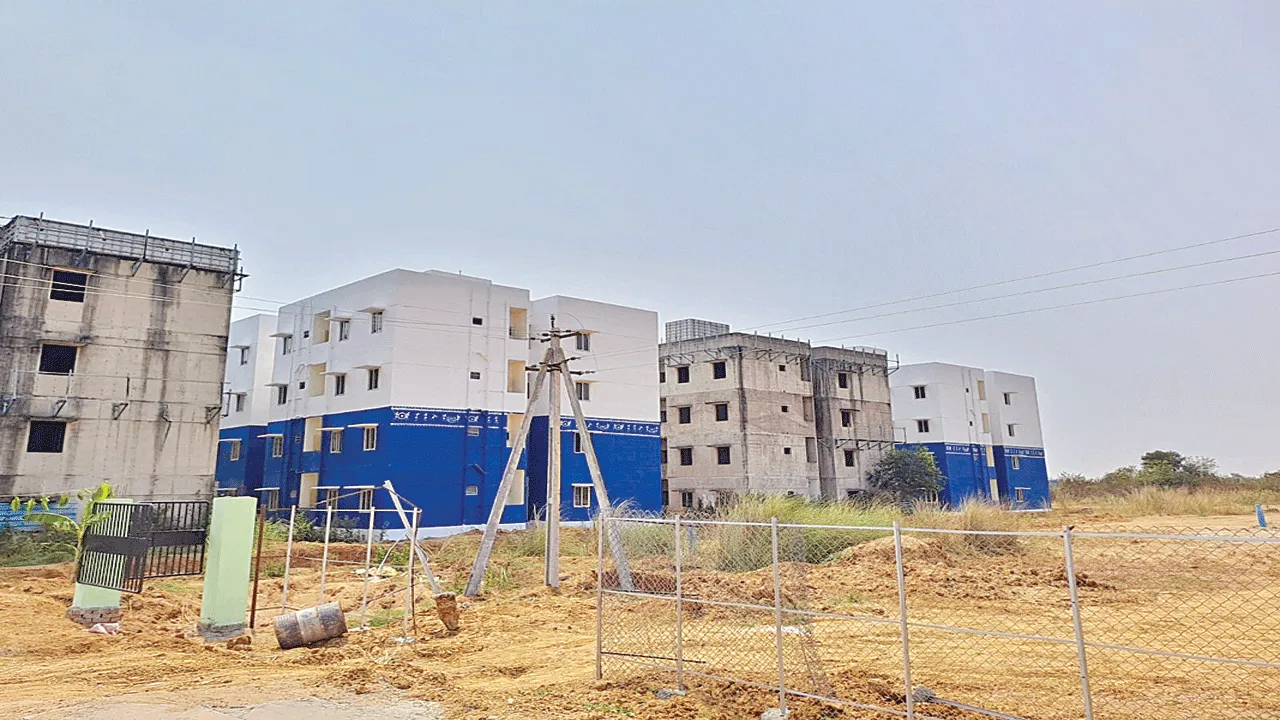 - నాడు మూడు కేటగిరీల్లో ఐదు అంతస్తుల్లో ఇళ్ల నిర్మాణం చేపట్టారు. 300 ఎస్ఎఫ్టి సైజులో 1344 ఇళ్లు, 365 ఎస్ఎఫ్టి సైజులో 528 ఇళ్లు, 430 ఎస్ఎఫ్టి సైజులో 576 ఇళ్ల నిర్మాణం చేపట్టగా ఒక్కో బ్లాకులో 48 ఇళ్లు చొప్పున ఉన్నాయి. అయితే వైసీపీ అధికారంలోకి వచ్చిన తర్వాత రివర్స్ టెండరింగ్ పేరుతో 25 శాతం లోపు నిర్మాణం జరిగిన ఇళ్లను పూర్తిగా నిలిపేశారు. మిగిలిన ఇళ్ల పనులను చివరి వరకు సాగదీశారు.