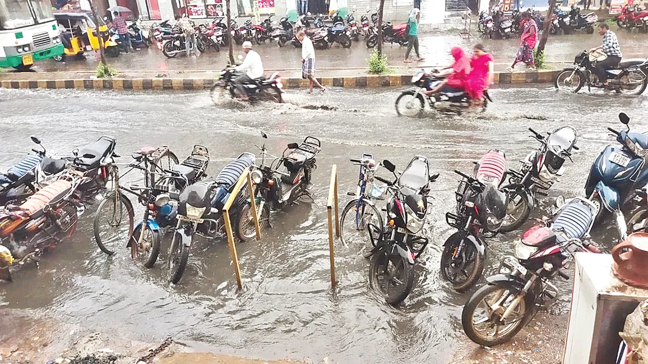 రాజాం రూరల్, సెప్టెంబరు 23 (ఆంధ్రజ్యోతి):రాజాంలో మంగళవారం కుండపోత వర్షం కురవడంతో జనజీవనం స్తంభించింది. మధ్యాహ్నం మూడుగంటల నుంచి సాయంత్రం ఐదు గంటల వరకూ వర్షం కురవడంతో ప్రజలు అవస్థలకు గురయ్యారు. మెయిన్రోడ్ మీదుగా మురుగునీరు ప్రవహించడంతో రాకపోకలకు తీవ్ర అంతరాయం కలిగింది. శ్రీకాకుళం రోడ్లో ద్విచక్రవాహనచోదకులు అవస్థలకు గురయ్యారు. ఇదే రోడ్ లోని సప్తగిరికాలనీతోపాటు మల్లిఖార్జునకాలనీలో ఇళ్లల్లోకి మురుగునీరంతా చేరడంతో ఇళ్లలో ఉంటున్నవారు ఇబ్బందులకు గురయ్యారు. ఇళ్లల్లోకి చేరిన నీటిని తొలగించేం దుకు శ్రమించాల్సివచ్చింది.ఈశ్వరనారాయణ కాలనీలోని ఐదులైన్లు, బాబానగర్, నరసిం హనాయుడుకాలనీ తదితర కాలనీల్లోకి వెళ్లేందుకు పలువురు ఇబ్బందులు పడ్డారు. బొబ్బిలిరోడ్లో పలువీధుల్లోని మురుగునీరంతా మెయిన్రోడ్ మీదుగా రెండు అడుగుల మేర ప్రవహిస్తూ శ్రీకాకుళంరోడ్లో కిలోమీటరు మేర నిలిచిపోయింది. గొల్లవీధి, చాకలి వీధి, రెళ్లివీధి, మెంటిపేట ఎస్సీ కాలనీల్లో మురుగునీటి నిల్వలు పేరుకుపోయాయి.