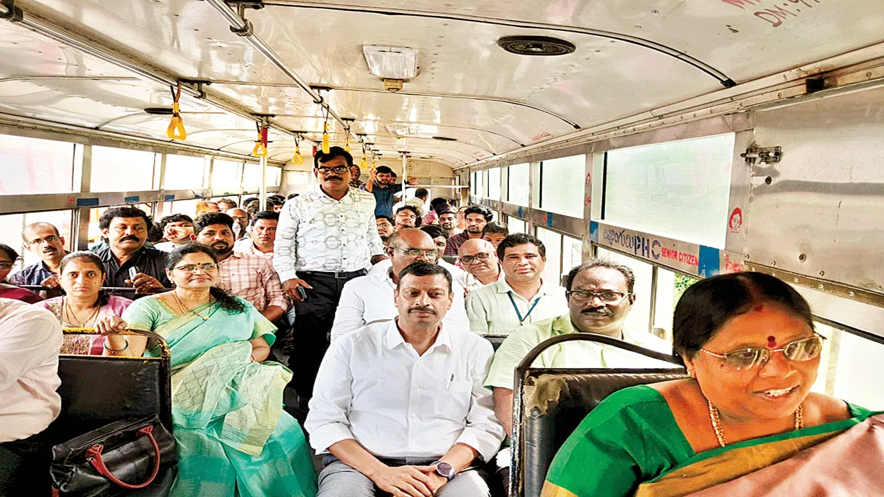 ఆర్టీసీ బస్సులో ప్రయాణించిన కలెక్టర్ అంబేడ్కర్, ఎమ్మెల్యే లలితకుమారి