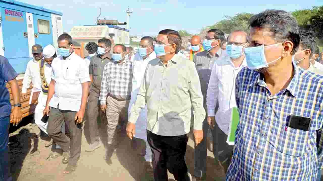 డోన టౌన, సెప్టెంబరు 9 (ఆంధ్రజ్యోతి): ఏపీ చెత్తరహిత రాష్ట్రంగా తీర్చిదిద్దేందుకు కృషి చేస్తున్నామని రాష్ట్ర పురలపాక, పట్టణాభివృద్ధి శాఖ మంత్రి పొంగూరు నారాయణ పేర్కొన్నారు. మంగళవారం ఆయన డోనలో పర్యటించారు. మంత్రి నారాయణకు ఎమ్మెల్యే కోట్ల సూర్యప్రకాశరెడ్డి, టీడీపీ, బీజేపీ, జనసేన నాయకులు ఘన స్వాగతం పలికారు. డోన డంపింగ్ యార్డులో లెగసి వేస్ట్ మేనేజ్మెంట్ ప్లాంటు పనులను ఎమ్మెల్యేతో కలిసి మంత్రి నారాయణ పరిశీలించారు. చెత్త తొలగింపు ప్రక్రియను మరింత వేగవంతం చేయాలని మంత్రి ఆదేశించారు. అనంతరం ఆయన విలేకరులతో మాట్లాడారు. వైసీపీ చేసిన రాష్ర్టాన్ని, మున్సిపల్ వ్యవస్థను సర్వనాశనం చేశాయన్నారు. వారు చేసిన అరాచకాలు, అవకతవకల నుంచి రాష్ట్రం ఇప్పుడిప్పుడే బయట పడుతుందని అన్నారు. చెత్త పన్ను పేరుతో వైసీపీ ప్రభుత్వం ప్రజలను పీడించిందన్నారు. 85 లక్షల టన్నుల చెత్తను మాత్రం వదిలి వెళ్లిందని, వారు వదిలి వెళ్లిన చెత్తను తాము తొలగిస్తున్నామన్నారు. అక్టోబరు 2వ తేదీ గాంధీ జయంతి నాటికి ఈ చెత్తనంగా పూర్తి స్థాయిలో తొలగించాలని సీఎం చంద్రబాబు ఆదేశించారన్నారు. రాష్ట్రంలో రీసైక్లింగ్ పనులు శరవేగంగా సాగుతున్నాయని చెప్పారు. ఇప్పటికే 79 లక్షల టన్నుల చెత్తను తొలగించామని, ఇంకా 6 లక్షల టన్నుల చెత్త మిగిలి ఉందని తెలిపారు. ఒక్క డోనలో 50వేల టన్నుల చెత్తకు గానూ 36వేల టన్నులు తొలగించామన్నారు. భవిష్యత్తులో చెత్త సమస్య లేకుండా వేస్ట్ ఎనర్జీ ప్లాంట్లు ఏర్పాటు చేయబోతున్నట్లు ప్రకటించారు. రాష్ట్రంలో డంపింగ్ యార్డులే లేకుండా చేయాలన్నది సీఎం చంద్రబాబు ఆలోచన అని వివరించారు. ఒక వైపు 10 లక్షల కోట్ల అప్పు కడుతూ మరో వైపు అభివృద్ది, సంక్షేమం రెండు కళ్లుగా ముందుకు సాగుతున్నామన్నారు. ఉన్నత ఉద్దేశంతో ప్రారంభించిన టిడ్కో ఇళ్లను కూడా గత వైసీపీ ప్రభుత్వం నిర్వీర్యం చేసిందని, వచ్చే మార్చి నాటికి టిడ్కో ఇళ్ల సమస్యను కూడా పరిష్కరిస్తామని మంత్రి తెలిపారు. డంప్ యార్డు పరిశీలించిన అనంతరం పట్టణంలోని ఎమ్మెల్యే కోట్ల స్వగృహానికి చేరుకుని అల్పాహారం చేసిన అనంతరం మంత్రి అనంతపురానికి బయలుదేరి వెళ్లారు.కార్యక్రమంలో మున్సిపల్ కమిషనర్ ప్రసాద్గౌడు, ఆర్డీవో కేసీ నరసింహులు, తహసీల్దార్ రవికుమార్, మున్సిపల్ డీఈ రఘు, ఏఈ సురేష్, టీడీపీ రాష్ట్ర కార్యదర్శులు వలసల రామకృష్ణ, కోట్రికే ఫణిరాజ్, టీడీపీ అధికార ప్రతినిధి విజయభట్టు, భాస్కర్ నాయుడు, మండల అధ్యక్షుడు శ్రీనివాస్ యాదవ్, సర్పంచ అర్జునరెడ్డి, కోట్రికే హరికిషన, పెద్ద కేశవయ్యగౌడు, చిన్న మల్కాపురం సుధాకర్ రెడ్డి, వాస్తు లక్ష్మన్న, టీడీపీ, బీజేపీ, జనసేన నాయకులు ఉన్నారు.