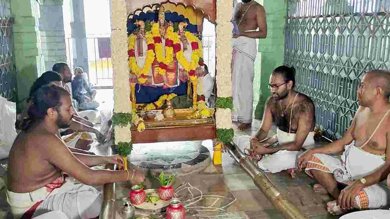 శ్రీదేవి, భూదేవి సమేత శ్రీనివాసుని ఆలయ కల్యాణ మండపంలో తిరుచ్చి వాహనంపై ఉంచి ప్రత్యేక అలంకారం చేశారు. స్వామి వారికి వసంతాలను సమర్పించారు. అర్చకులు, మహిళలు శ్రీవారిని కీర్తిస్తూ వడ్లను దంచారు. భక్తులపై వేడుకగా వసంతాలను చల్లారు.