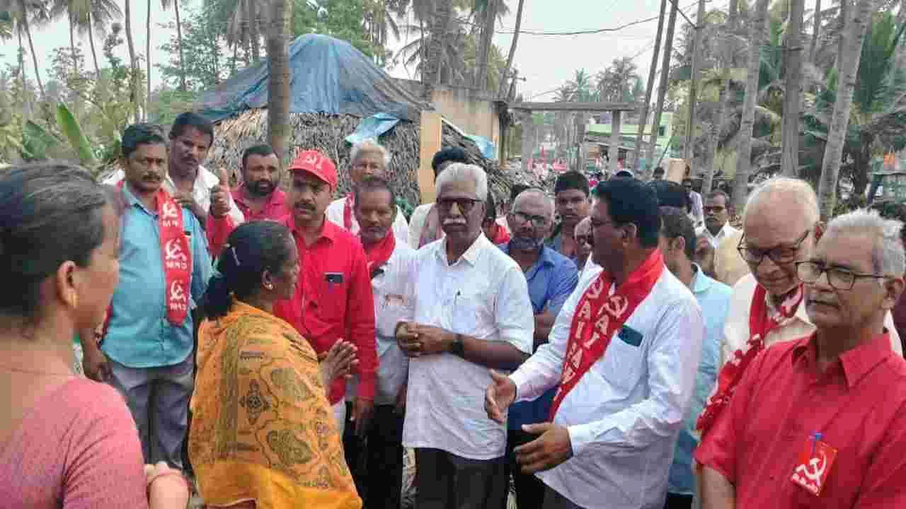 పాలకోడేరు, ఏప్రిల్ 22 (ఆంధ్రజ్యోతి): పాలకోడేరు అల్లూరి సీతారామరాజు నగర్లో పేదల ఇళ్లు తొలగించడం దారుణమని సీపీఎం రాష్ట్ర కార్యదర్శి వి.శ్రీనివాసరావు అన్నారు. ఇళ్లు తొలగించిన ప్రాంతంలో మంగళవారం పర్యటించి బాధితులను వివరాలు అడిగి తెలుసుకున్నారు. పడగొట్టిన పేదల ఇల్లు పక్కనే ఆనుకుని ఉన్న భూస్వాములు ఆక్రమించుకున్న ప్రభుత్వ భూమిని, ప్రభుత్వ సర్వే రాళ్లను పరిశీలించారు. ఆయన మాట్లాడుతూ పేదలు, ఒంటరి మహిళలు, వృద్ధులు, బాలింతలపై ప్రభుత్వ విధ్వంసం, అరాచకాన్ని సృష్టించిందన్నారు. చంద్రబాబు పుట్టినరోజు నాడు జరిగిన ఈ ఘటనను ముఖ్యమంత్రి బహుమతిగా స్వీకరిస్తారా, తిరస్కరిస్తారా అని ప్రశ్నించారు. ఎమ్మెల్యే రఘురామకృష్ణంరాజు చేసిన పాపంలో కలెక్టర్ నుంచి ఎమ్మార్వో వరకు అధికారులందరూ భాగస్తులే అన్నారు. ప్రభుత్వ భూముల్లో పేదలు ఇల్లు వేసుకుంటే తొలగించే అధికారం ఎవరికీ లేదన్నారు. మహిళలను మగ పోలీసులు కొట్టడంపై మానవ హక్కుల సంఘాలకు నివేదిస్తామన్నారు. ప్రజల పక్షాన ఉండాల్సిన అధికారులు, ఎమ్మెల్యేకు డూడూ బసవన్నలా మారారన్నారు. డబ్బులిచ్చి ఓట్లేయించుకున్నాను అని ఎమ్మెల్యే చెప్పడం సిగ్గుచేటన్నారు. డిప్యూటీ స్పీకర్ పదవికి రఘురామకృష్ణంరాజు అనర్హుడన్నారు. ప్రభుత్వానికి దమ్ముంటే రఘురామకృష్ణంరాజు అవినీతిని, ఎగ్గొట్టిన బకాయిలను బయటపెట్టాలన్నారు. ఉండి నియోజకవర్గంలో ఇంత విధ్వంసం జరుగుతుంటే ముఖ్యమంత్రి చంద్రబాబు, ఉప ముఖ్యమంత్రి పవన్కల్యాణ్కు కనబడడం లేదా అని శ్రీనివాసరావు ప్రశ్నించారు. పేదల ఇళ్లను కూల్చాలని చూస్తే చూస్తూ ఉండబోమని, ఎర్రజెండా అండగా నిలుస్తుందన్నారు. సీపీఎం జిల్లా కార్యదర్శి గోపాలన్ మాట్లాడుతూ ఉండి నియోజకవర్గంలో ఆరు నెలల కాలంలో వందలాది పేదల ఇళ్లు తొలగించారని మండిపడ్డారు. సీపీఎం రాష్ట్ర కార్యవర్గ సభ్యులు బలరాం మాట్లాడుతూ ప్రభుత్వం ప్రతిష్టాత్మకంగా చేపట్టిన పీ4 ఉండి నియోజకవర్గంలో రివర్స్లో అమలవుతుందన్నారు. ఇక్కడ పేదలను కొట్టి సంపన్నులకు ఆస్తులను కట్టబెడుతున్నారని ఆగ్రహం వ్యక్తం చేశారు. సీపీఎం నేతలు మంతెన సీతారాం, బి.వాసుదేవరావు, జక్కంశెట్టి సత్యనారాయణ, దూసి కళ్యాణి, మామిడిశెట్టి రామాంజనేయులు, కె.క్రాంతిబాబు, ధనికొండ శ్రీనివాస్, కె.తవిటినాయుడు, జుత్తిగ నరసింహమూర్తి, శేషపు అశ్రియ్య తదితరులు పాల్గొన్నారు.