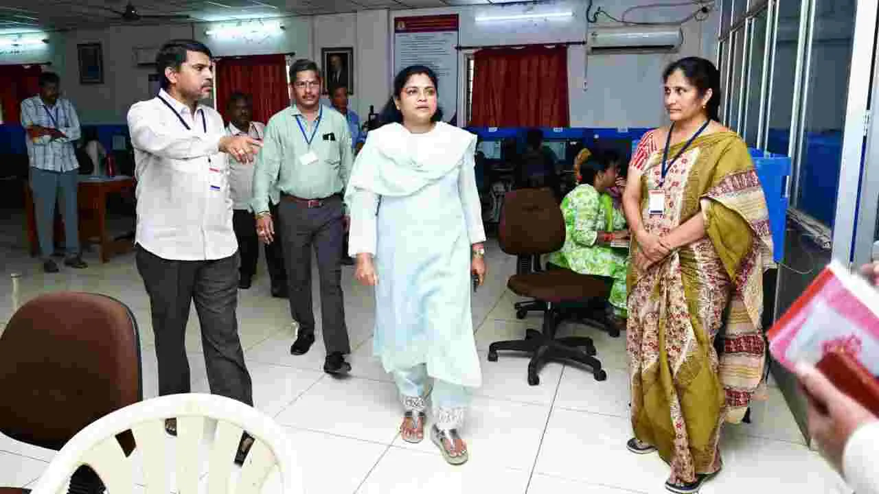 భీమవరం డీఎన్నార్ కాలేజీలో పరీక్షా కేంద్రాన్ని శుక్రవారం కలెక్టర్ నాగ రాణి తనిఖీ చేశారు. జిల్లాలో ఐదు పరీక్ష కేంద్రాలున్నాయని, మొత్తం 16,634 మంది అభ్యర్థులు పరీక్షకు హాజరవుతారని తెలిపారు. జూలై 30 వరకు సుమారు 23 రోజులు మూడు షిఫ్ట్లలో పరీక్షల నిర్వహణకు ఏర్పాట్లు చేసినట్లు తెలిపారు. ప్రతి పరీక్ష కేంద్రం వద్ద వైద్య శిబిరం, తాగునీటి సౌకర్యాన్ని ఏర్పా టు చేసినట్లు తెలిపారు. పరీక్ష కేంద్రాల వద్ద పోలీసు బందోబస్తు ఏర్పాటు చేశామని, 144 సెక్షన్ అమలులో ఉంటుందని స్పష్టం చేశారు. డీఈవో ఇ.నారాయణ, చీఫ్ సూపరింటెండెంట్ తంగిరాల హరి ఆనంద్ ప్రసాద్, కాలేజీ ప్రిన్సిపాల్ డాక్టర్ ఎం.అంజన్కుమార్ తదితరులు ఉన్నారు.