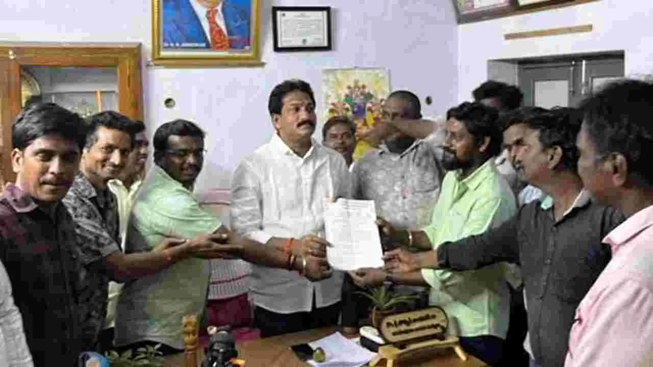 న్యాయమైన డిమాండ్లను పరిష్కరించాలంటూ మునిసిపల్ ఇంజనీరింగ్ సిబ్బంది కొద్దిరోజుల నుంచి ఆందోళన చేస్తున్నారు.