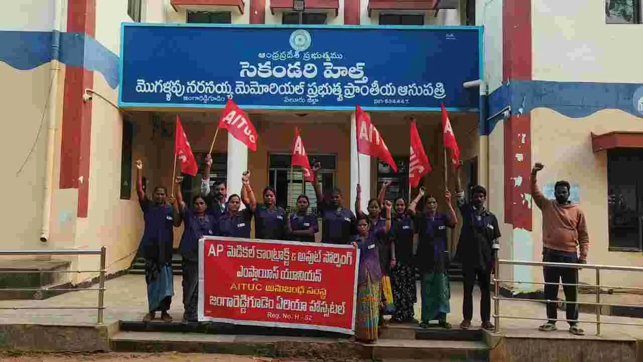 ప్రభుత్వాస్పత్రి పారిశుధ్య కార్మికుల ధర్నా