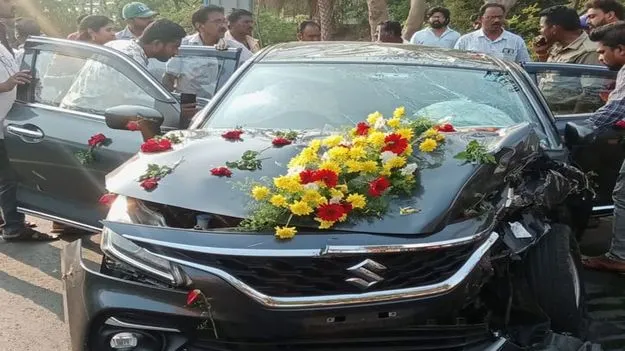 ఉంగుటూరు, ఏప్రిల్ 11(ఆంధ్రజ్యోతి): జాతీయ రహదారిపై నాచుగుంట వద్ద పెళ్లి కారును లారీ ఢీకొంది. కారులో ఉన్న వరుడికి స్వల్ప గాయాలు కాగా మరో నలుగురి తీవ్ర గాయాలయ్యాయి. తీవ్ర గాయాలతో ఉన్నవారు ఏలూరు ప్రైవేటు ఆస్పత్రిలో చికిత్స పొందుతుం డగా స్వల్ప గాయాలైన వరుడు ముహూర్త సమ యానికే పెళ్లి పీటలపై వధవు మెడలో మూడు ముళ్లు వేశారు. ముహూర్త బలంతో వరుడు ప్రమాదం నుంచి బయటపడి శుభం జరిగిందని బంధువులు ఊపిరి పీల్చుకున్నారు.