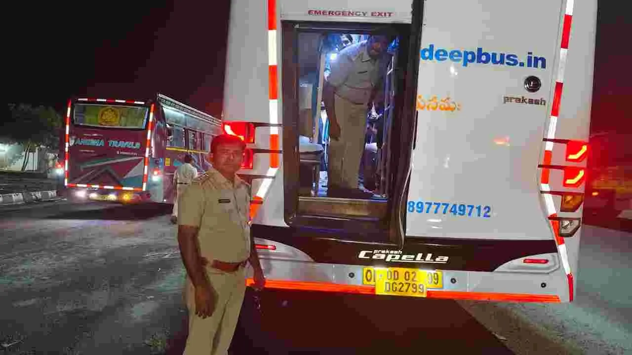 కర్నూలులో వేమూరి కావేరి బస్సు అగ్నిప్రమాదానికి గురైన సంఘటన నేపథ్యంలో రవాణాశాఖ అధికారులు అప్రమత్తమై ప్రైవేటు ట్రావెల్ బస్సులపై కొరడా ఝుళిపిం చారు.