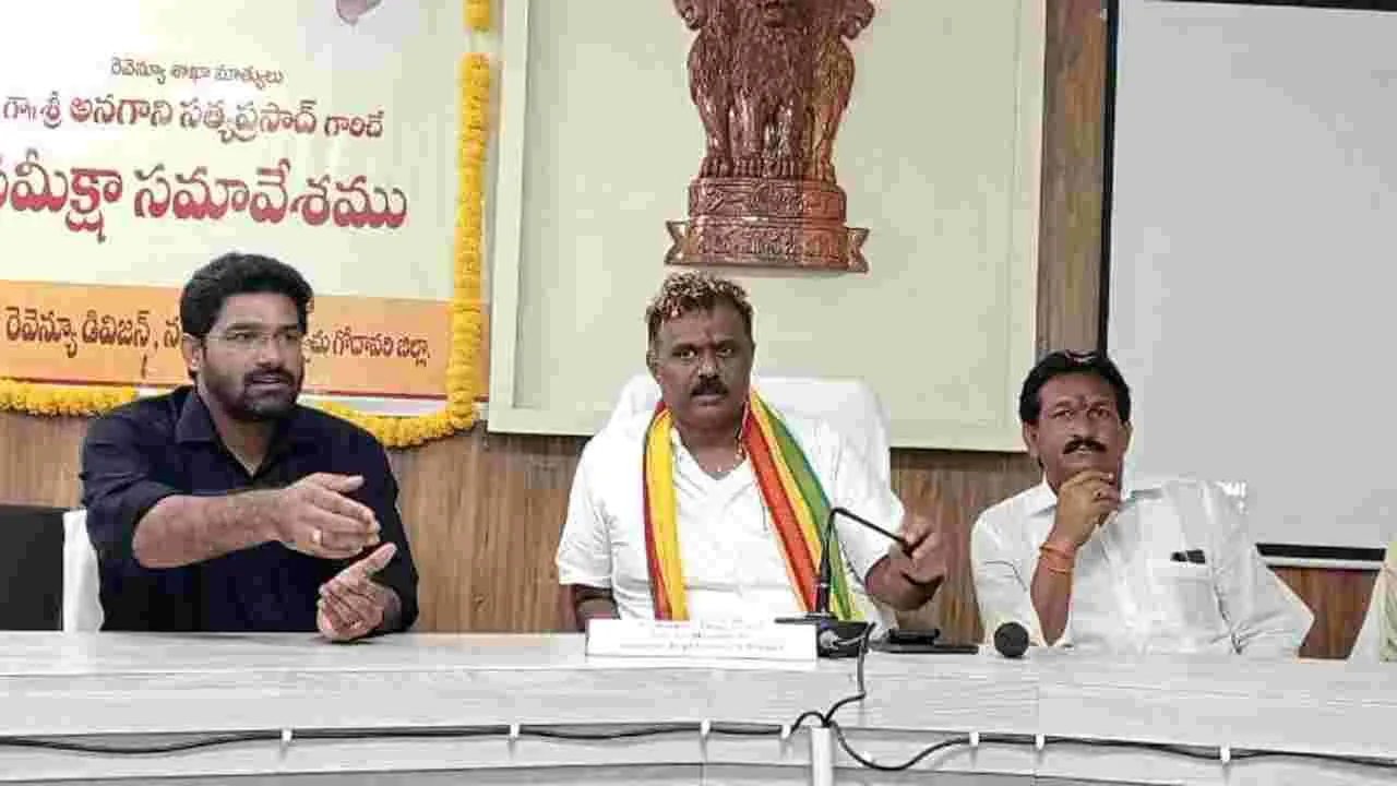 అధికారులు, రైతులతో రెవెన్యూ శాఖ మంత్రి అనగాని సత్యప్రసాద్ సమీక్ష