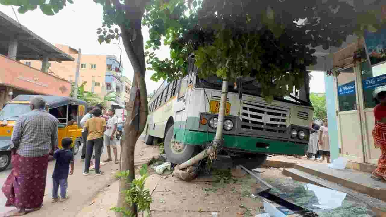 ద్వారకాతిరుమలలో ఆర్టీసీ బస్సు బ్రేక్ ఫెయిల్ అవ్వగా డ్రైవర్ చాకచక్యంతో పెనుప్రమాదం తప్పింది.
