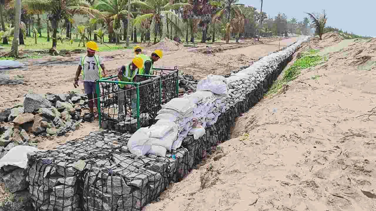 నరసాపురం రూరల్, జూలై 1(ఆంధ్రజ్యోతి): మండలంలోని పీఎంలంక వద్ద సముద్ర కోత నివారణకు గోడ నిర్మాణ పనులు జరుగుతున్నాయి. డిసెంబర్ నాటికి పనులు పూర్తి చేస్తామని నిర్మాణ సంస్థ రీజనల్ మేనేజర్ రమేష్శెట్టి చెప్పారు. గోడ నిర్మాణానికి ఆర్థిక సహకారం అందిస్తున్న డెలైట్ కంపెనీ ప్రతినిధులు మంగళవారం పనులు పరిశీలించారు. కోత నివారణకు ఈ సంస్థ రూ.13.50 కోట్లు అందించడంతో సుమారు ఒక కిలో మీటరు గోడ నిర్మించనున్నారు. పూనేకు చెందిన గార్వేర్ సంస్థ చేపట్టిన నిర్మాణ పనులపై డెలైట్ సంస్థ ప్రతినిధులు సంతృప్తి వ్యక్తం చేశారు. రమేష్శెట్టి మాట్లాడుతూ సింగపూర్, మలేషియాలో సముద్ర కోత నివారణకు ఏ తరహాలో గోడ నిర్మించారో అదే టెక్నాల జీని ఇక్కడ వినియోగించామన్నారు.