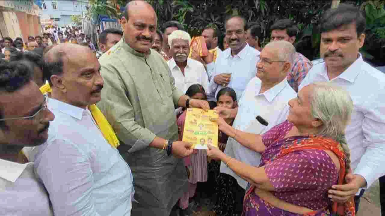 ఏం అవ్వా.. ఏం తమ్ముడూ బాగున్నావా? టీడీపీ ఏడాది పాలన ఎలా ఉంది? పథకాలు అందుతున్నాయా? ఏమైనా దిద్దుబాట్లు అవసరమా అంటూ కుశల ప్రశ్నలతో మంత్రి అచ్చెన్నాయుడు సుపరిపాలనలో తొలిఅడుగు కార్యక్రమం గణప వరంలో ఆసక్తిగా సాగింది. వెలంపేట పర్యటనలో పలువురు ఇళ్లు, తాగునీరు తదితర సమస్యలను మంత్రి దృష్టికి తీసుకెళ్లగా పరిష్కరి స్తామని హామీ ఇచ్చారు. తొలుత మంత్రికి అభిమానులు, కార్యకర్తలు, మహిళలు హారతులు పట్టి గజమాలతో స్వాగతం పలికారు. గణపవరం సొసైటీ నూతన అధ్యక్షుడు కూసంపూడి సురేంద్రకుమార్ రాజు, పాలకవర్గాన్ని మంత్రి, గన్ని సత్కరించారు. రాష్ట్ర క్షత్రియ కార్పొరేషన్ డైరెక్టర్ రామకృష్ణంరాజు, రాజ్యసభ మాజీ సభ్యురాలు తోట సీతారామలక్ష్మి, ఏలూరు ఎమ్మెల్యే బడేటి రాధాకృష్ణ, ఎమ్మెల్సీ రాజశేఖర్, భవన నిర్మాణ కార్మిక సంక్షేమ సంఘ చైర్మన్ వలవల బాబ్జీ, ఉంగుటూరు నియోజకవర్గ బీజేపీ ఇన్ఛార్జ్ మాలతీరాణి తదితరులు పాల్గొన్నారు.