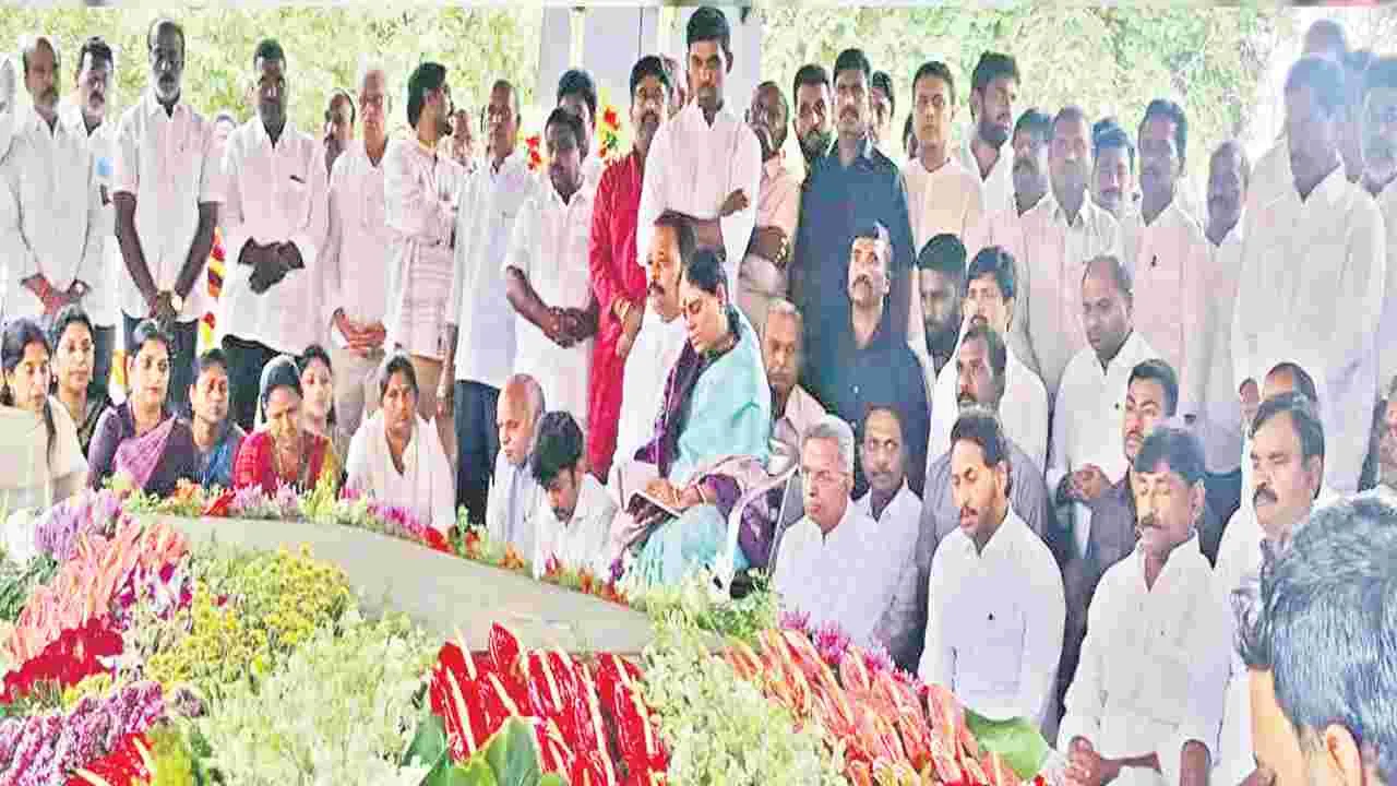 వేంపల్లె, సెప్టెంబరు 2(ఆంధ్రజ్యోతి): దివంగత ముఖ్యమంత్రి వైఎస్ రాజశేఖరరెడ్డి 16వ వర్ధంతిని పురస్కరించుకుని అన్నాచెల్లెలు జగన్, షర్మిలలు ఇడుపులపాయలోని వైఎస్సార్ ఘాట్ వద్ద వేర్వేరుగానే నివాళులర్పించారు. వీరిద్దరి కార్యక్రమాల్లో తల్లి విజయలక్ష్మి పాల్గొన్నారు. పులివెందుల నుంచి మాజీ సీఎం వైఎస్ జగన్, ఆయన సతీమణి భారతి, తల్లి విజయలక్ష్మి, ఎంపీ అవినాశ్రెడ్డి, బాబాయి సుధీకర్రెడ్డి, ఇతర కుటుంబ సభ్యులు వైఎస్సార్ ఘాట్కు వచ్చి రాజశేఖర్రెడ్డికి నివాళులర్పించారు. మంగళవారం ఉదయం 7.30 గంటలకు చేరుకోవాల్సిన జగన్ అరగంట ఆలస్యంగా వచ్చారు. అనంతరం, వైఎస్ సమాధి వద్ద ప్రత్యేక ప్రార్థనలు చేశారు. కాగా, జగన్ ఘాట్ నుంచి వెళ్లే వరకు వైఎస్ షర్మిల గెస్ట్హౌ్సలో వేచి ఉన్నారు. వెళ్లిపోయాక 9 గంటల సమయంలో ఆమె అక్కడకు చేరుకున్నారు. తల్లి విజయలక్ష్మి, కుమారుడు రాజారెడ్డి, కోడలు ప్రియ, కుమార్తె అంజలి ఇతర కుటుంబ సభ్యులతో కలిసి సమాధి వద్ద ప్రత్యేక ప్రార్థనలు చేశారు. పూలమాల వేసి నివాళులు అర్పించారు. వైఎస్ స్ఫూర్తితో ప్రజల కోసమే పనిచేస్తున్నానని షర్మిల తెలిపారు.
