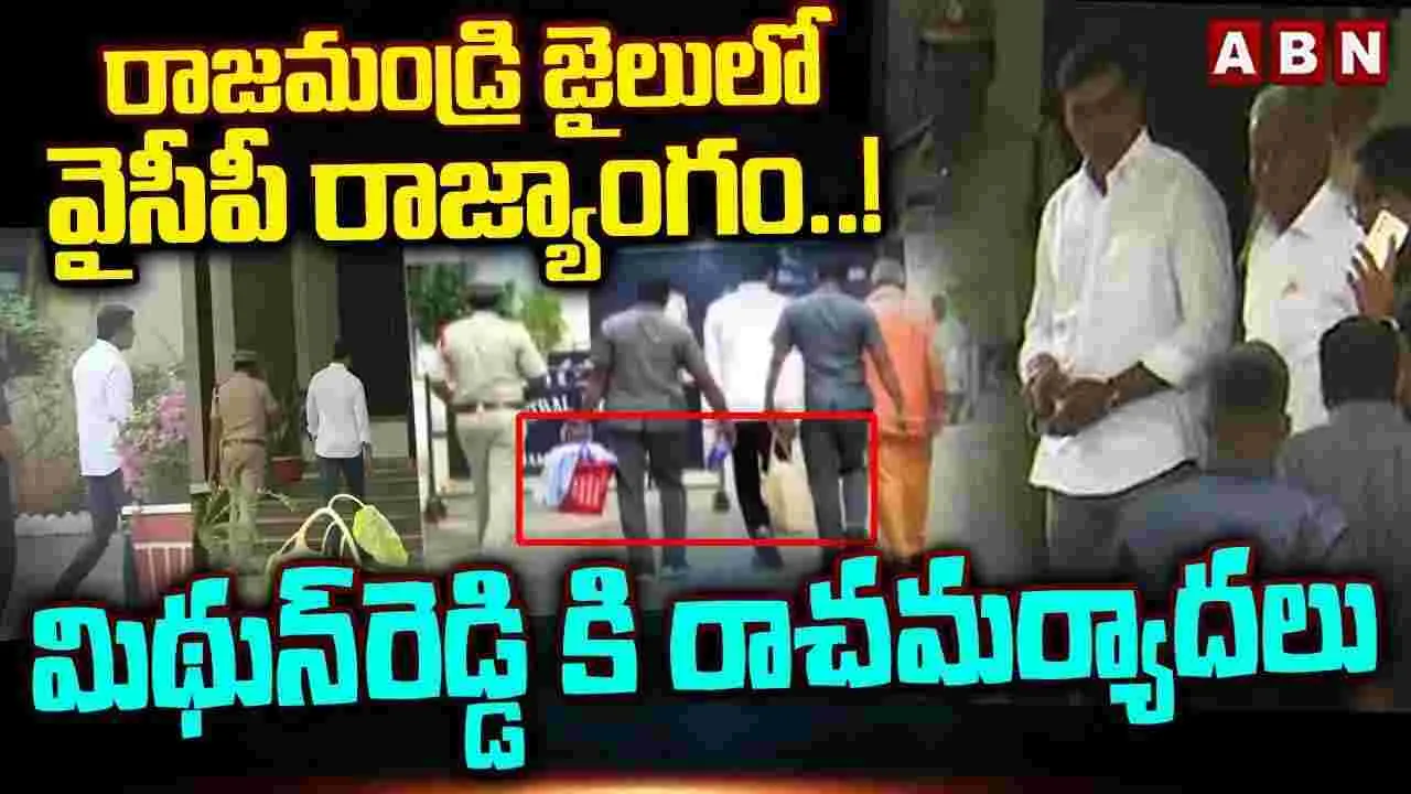 రాజమహేంద్రవరం, ఆగస్టు 5(ఆంధ్రజ్యోతి): తూర్పు గోదావరి జిల్లా రాజమహేంద్రవరం సెంట్రల్ జైలు లోపల, వెలుపల వైసీపీ రాజ్యాంగం నడుస్తోందన్న విమర్శలు వెల్లువెత్తుతున్నాయి. నాడు చంద్రబాబు జైలులో ఉన్న సమయంలో ములాఖత్లకే ముప్పుతిప్పలు పెట్టారు. జైలు పరిసరాల్లోకి టీడీపీ నేతలను అనుమతించనేలేదు. మరిప్పుడో.. మద్యం స్కాంలో జైల్లో ఉన్న ఏ-4, వైసీపీ ఎంపీ మిథున్రెడ్డికి సెంట్రల్ జైలు అధికారులు రాచమర్యాదలు చేస్తున్నారు. అడిగింది లేదనకుండా.. కోరింది కాదనకుండా సెల్యూ ట్ చేసి మరీ సౌకర్యాలు కల్పిస్తున్నారు. రిమాండ్లో ఉన్న నిందితుడికి రోజుకు ఒకసారి ములాఖత్ అంటేనే కష్టం. కానీ మిథున్రెడ్డి 2 సార్లు తీసుకుంటున్నారు.